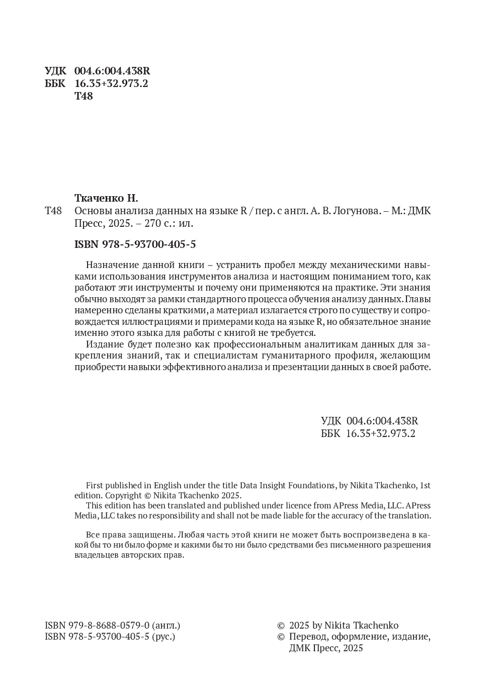 | Название в оригинале | Data Insight Foundations. Step-by-Step Data Analysis with R |