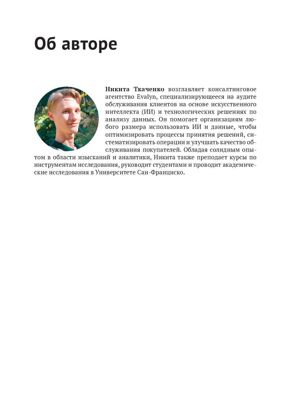 Издание предназначено исследователям и аналитикам данных, особенно работающим в академической среде, а также специалистам по работе с данными, нацеленным на карьерный рост.