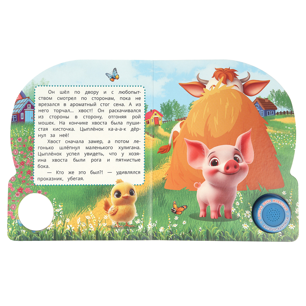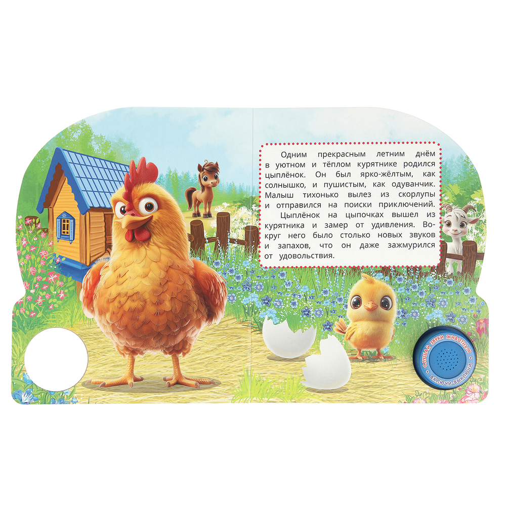 Малыш с удовольствием будет листать плотные страницы, рассматривать яркие картинки и знакомиться с разными животными и их голосами. Ребёнок легко освоит включение звука: по нажатию на кнопку песенка включится, при втором нажатии выключится. Благодаря удобному формату книгу можно взять с собой в дорогу.