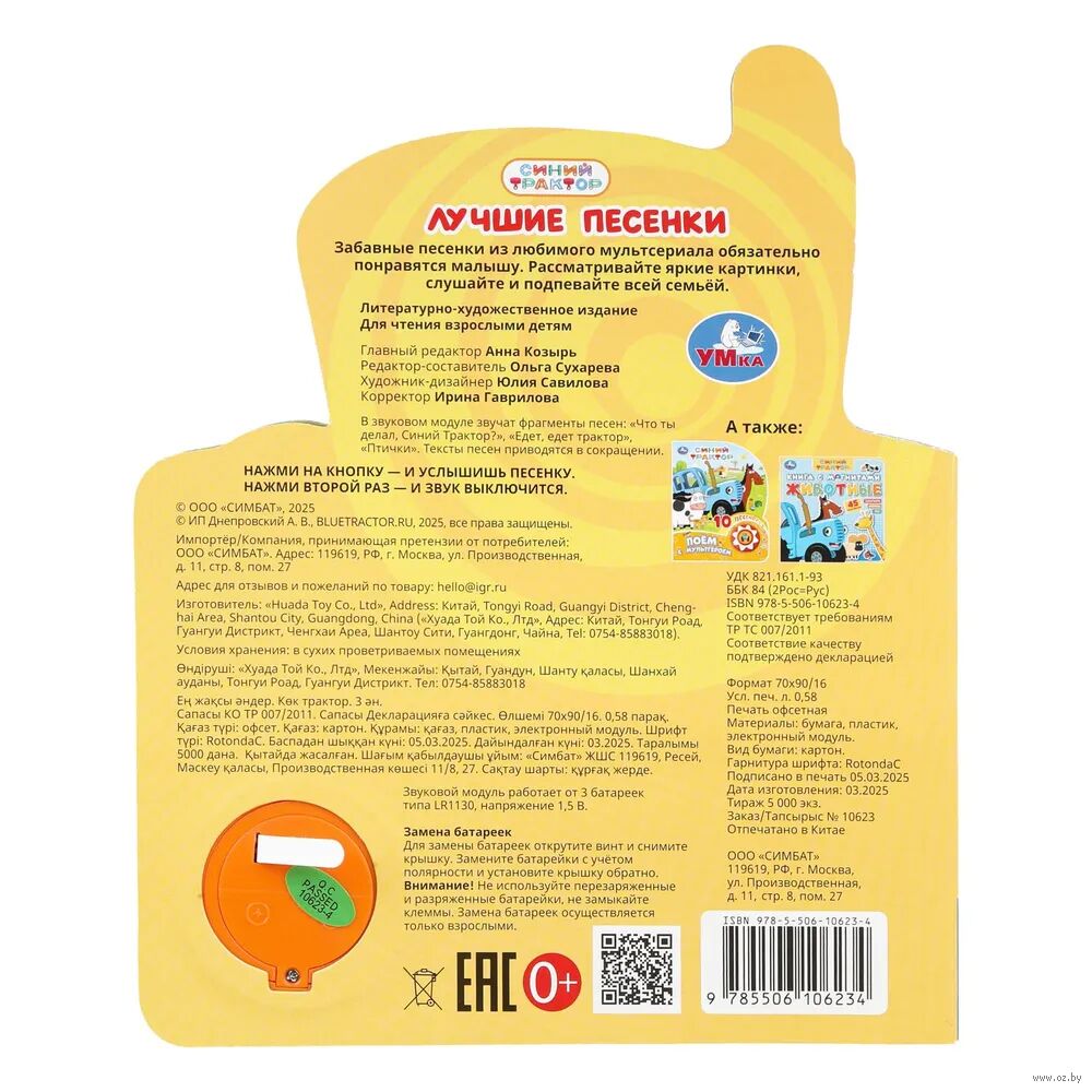 Ребёнок с удовольствием будет листать плотные страницы, рассматривать яркие картинки и, конечно, нажимать на кнопки и слушать весёлые песенки из мультсериала. Малыш легко освоит включение звука: по нажатию на кнопку песенка включится, при втором нажатии выключится, при третьем – заиграет следующая композиция. Благодаря компактному размеру книгу удобно взять с собой в дорогу.