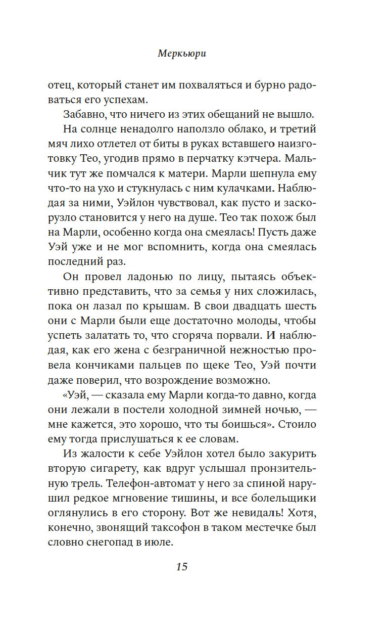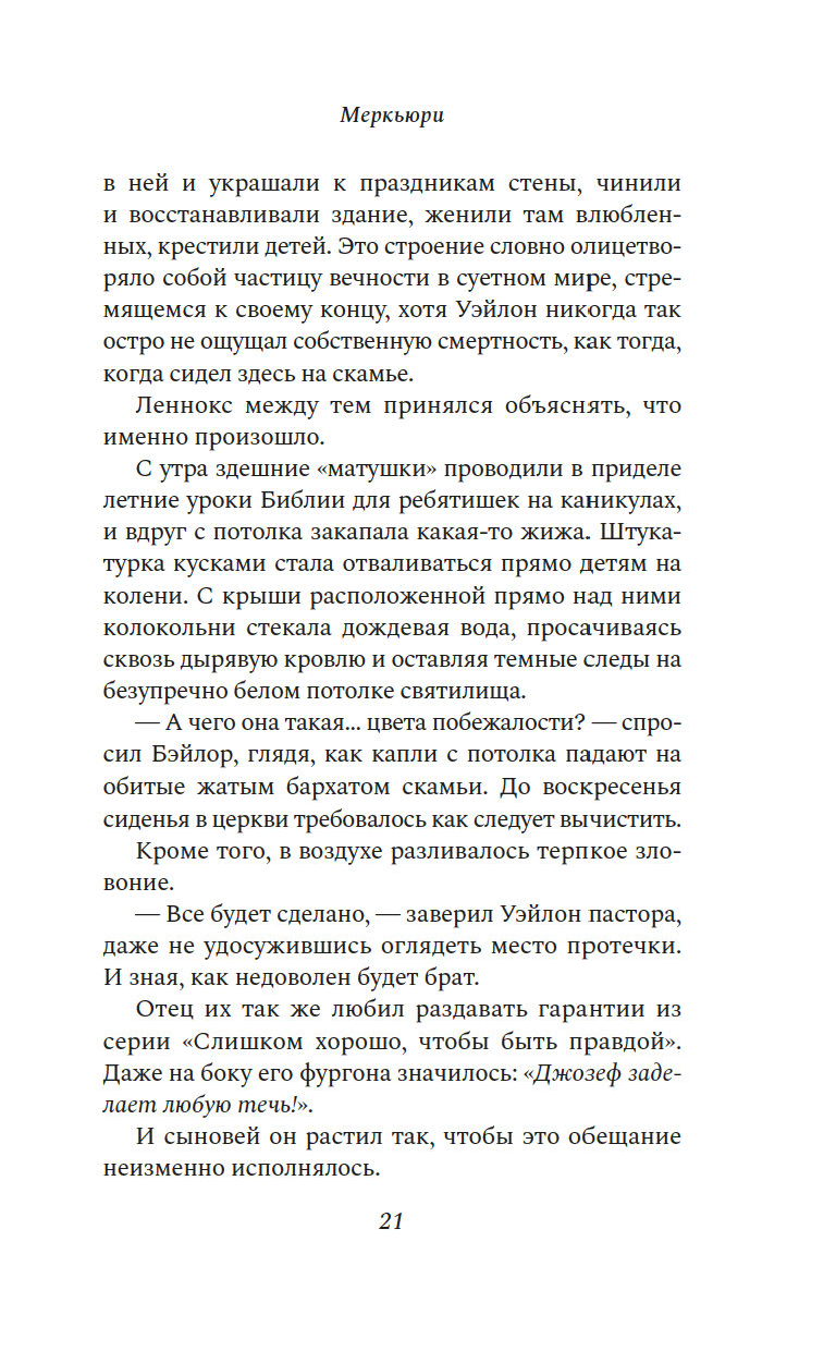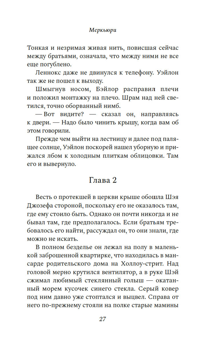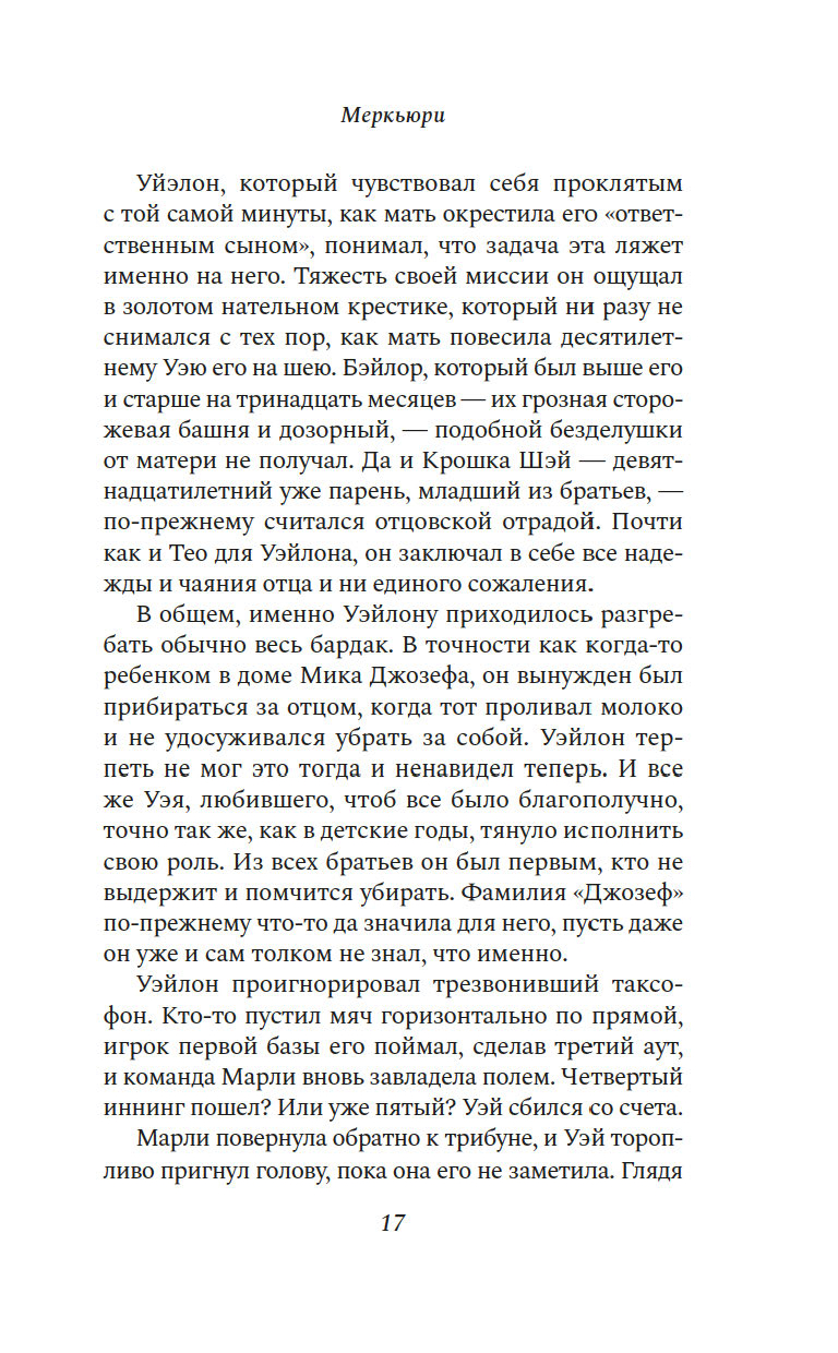 "Меркьюри" удивительно точно передает эмоциональную динамику внутри большой семьи, каждый член которой переживает свою боль, свою трагедию, свою мечту и свою потерю. Это роман, охвативший два десятка лет и запечатлевший жизнь Джозефов, словно в янтаре, красиво и по-настоящему.