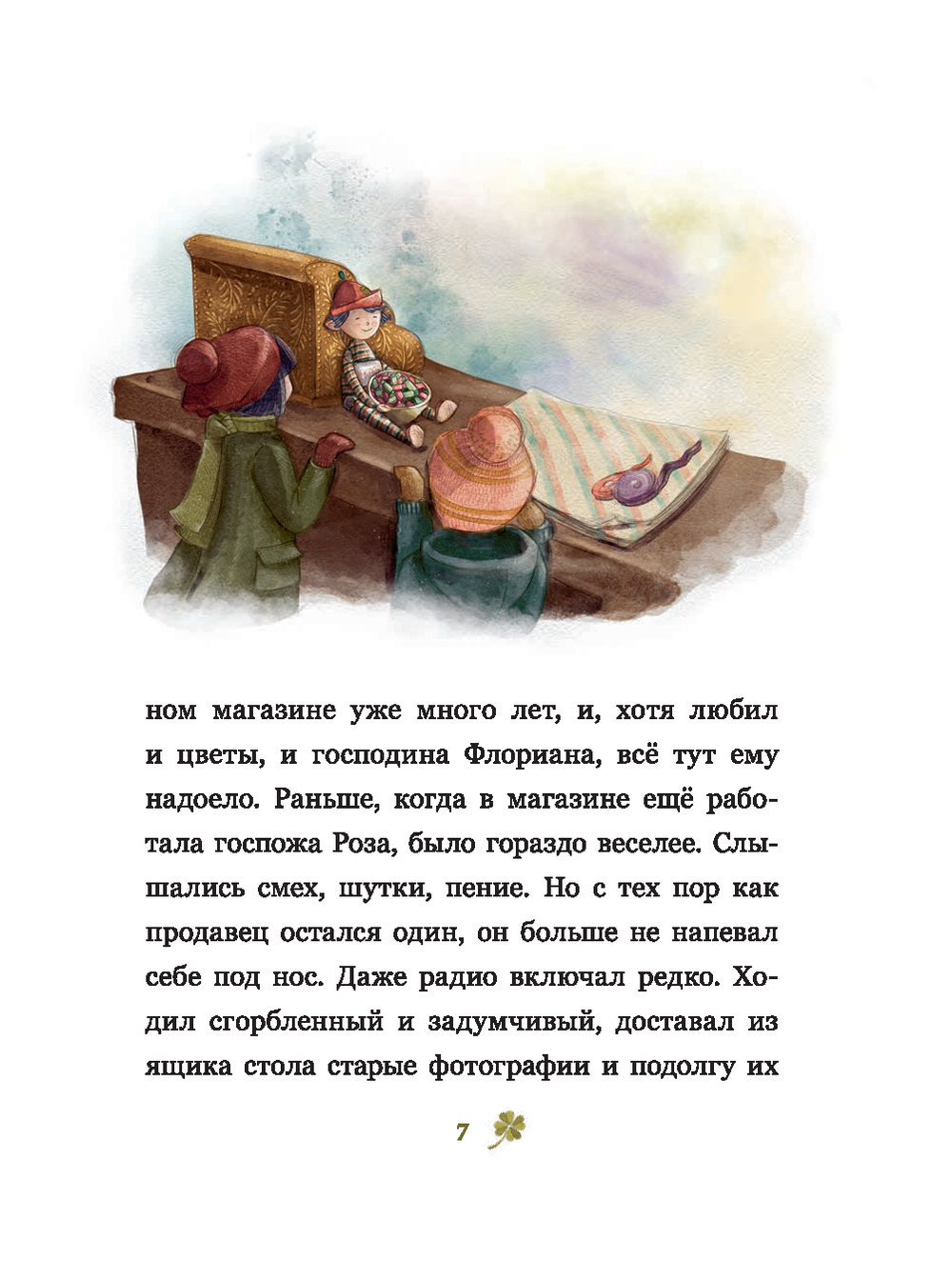 Лоскутный кукольный мальчик из цветочного магазина «Флориан и Роза» мечтает, чтобы с ним, как и с остальными игрушками, играли дети. Но дети бывают здесь редко, госпожи Розы больше нет, а господин Флориан всегда грустит, и даже приближающееся Рождество его не радует.