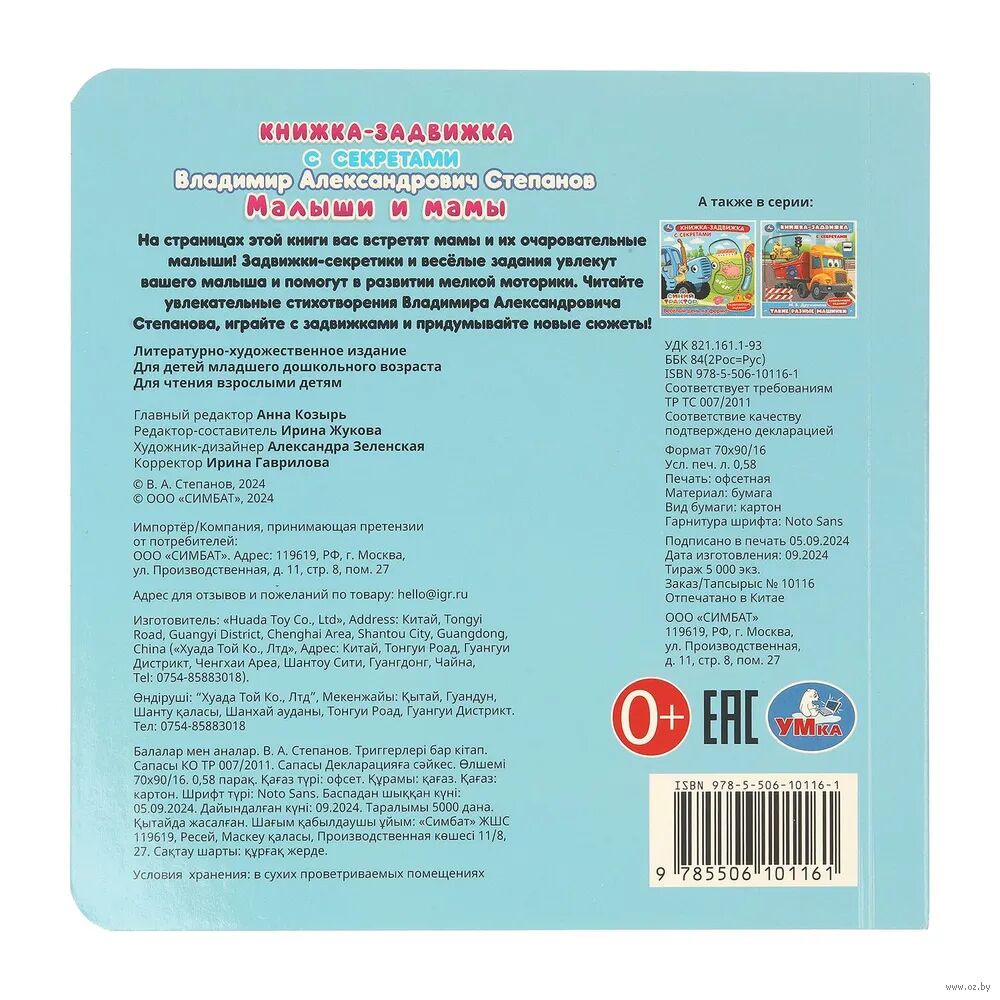 Малыш с удовольствием будет листать яркие странички, читать вместе с родителями интересные стихи Владимира Степанова и знакомиться с милыми животными и их детёнышами, на каждом развороте его также будут ждать занимательные задания. Ребёнку будет интересно выполнит все задания, ответы на которые можно узнать, если потянуть секретную задвижку. Благодаря компактному размеру книгу удобно брать с собой на прогулку или в дорогу.