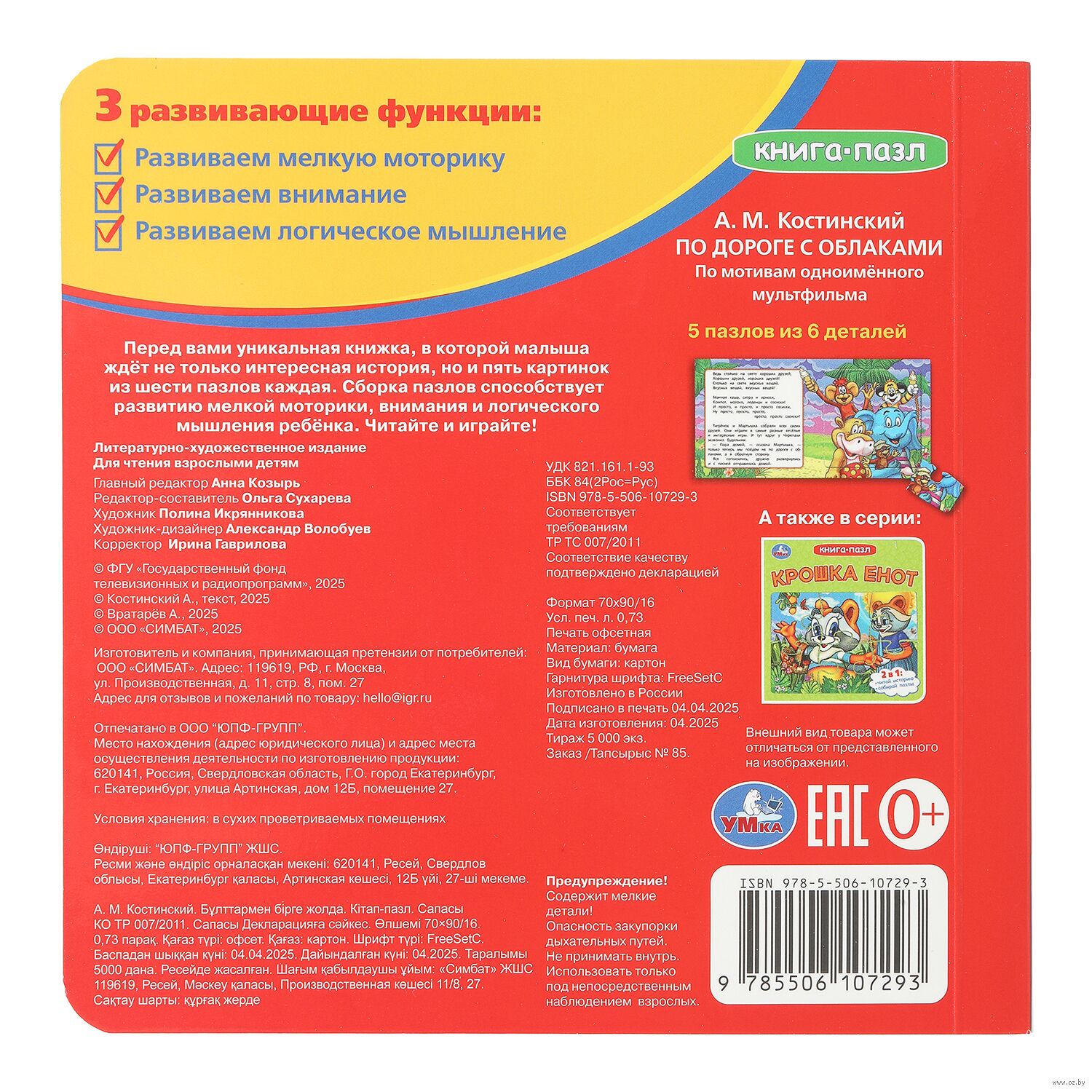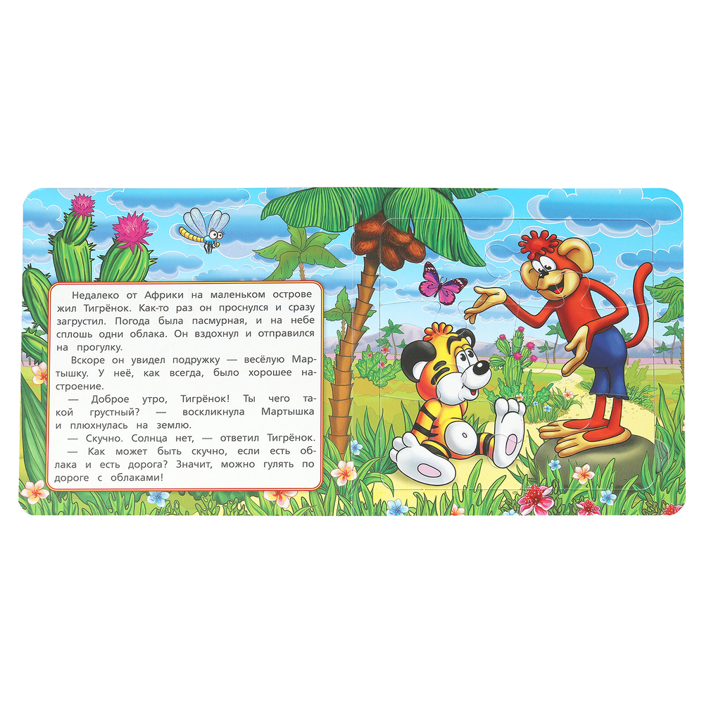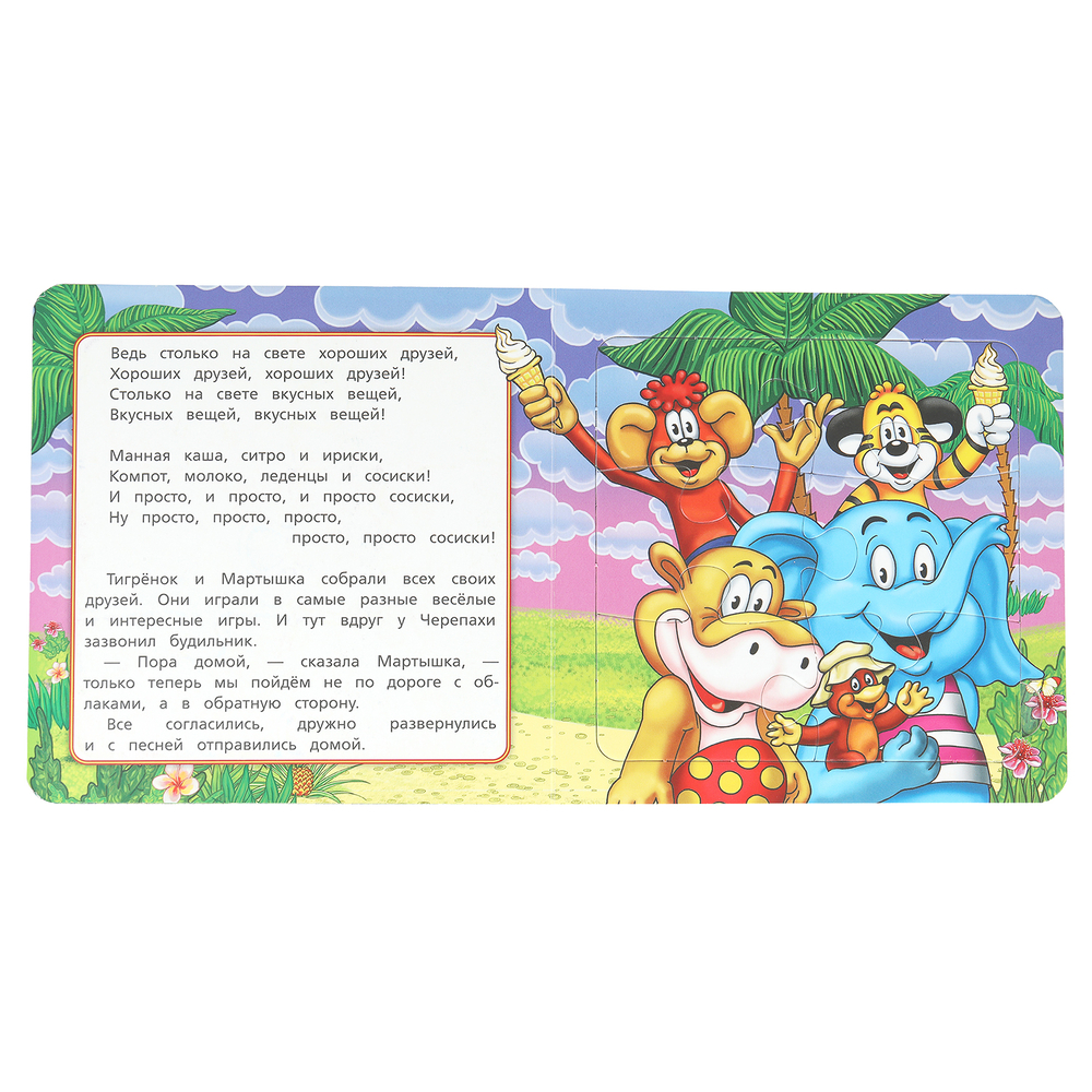 Данная книга выполняет сразу 2 функции: это и книга для чтения, и игра в пазлы. На каждом развороте ребёнка ждёт интересное повествование, а также яркий пазл с изображением героев любимого мультфильма. Книжка изготовлена из плотного картона, поэтому мамы могут не опасаться, что малыш порвёт странички. Благодаря удобному формату книгу можно взять с собой в дорогу.