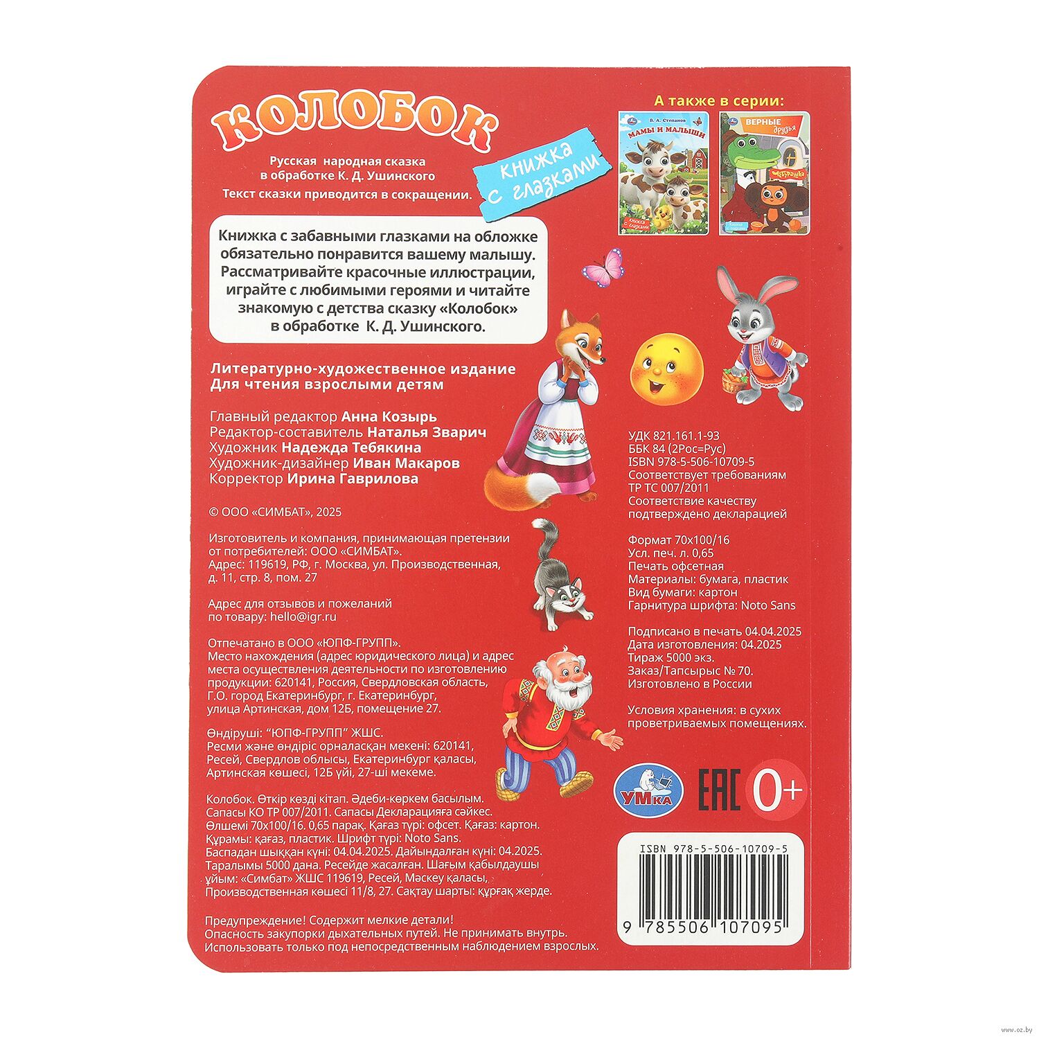 На страницах этой яркой книги ребёнка ждёт встреча с любимыми сказочными героями. Увлекательная история сопровождается большими красочными картинками с подвижными глазками, благодаря которым персонажи сказки выглядят совсем как живые. Компактный размер книги позволяет взять её с собой в путешествие.
