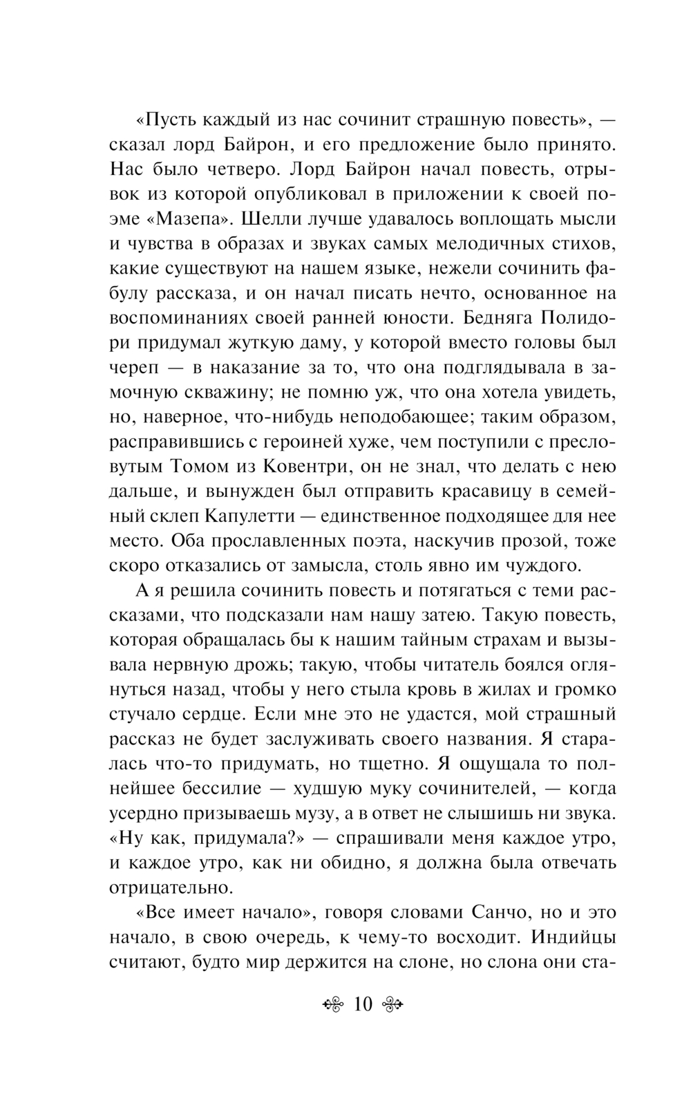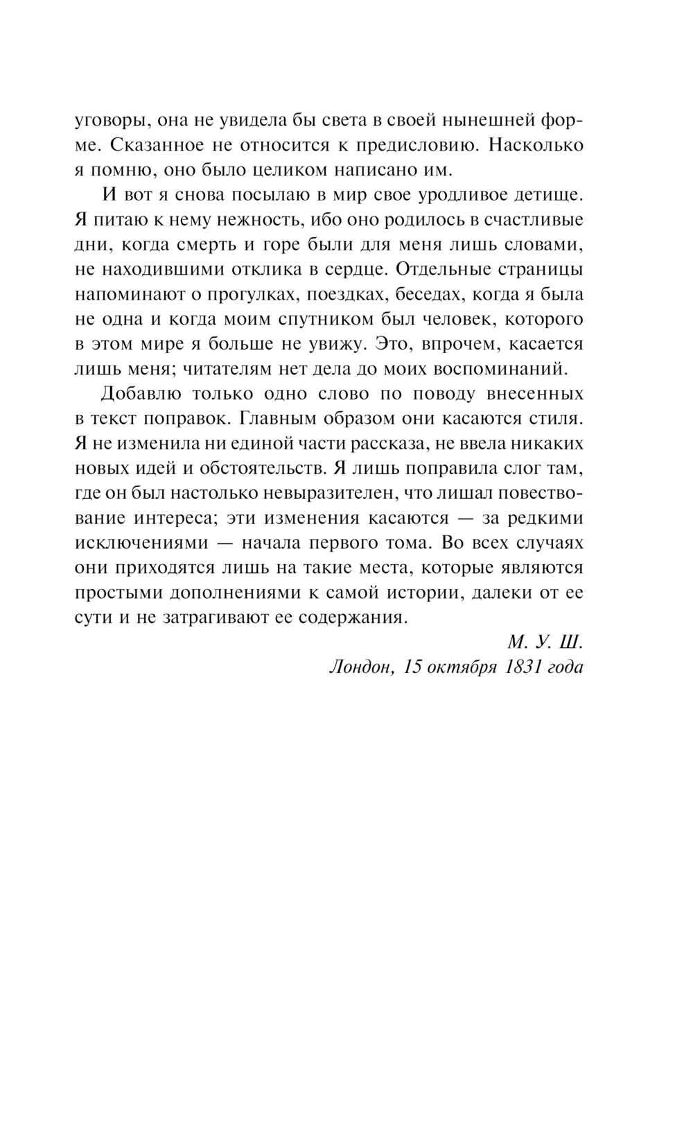 Замысел и первые эпизоды романа "Франкенштейн, или Современный Прометей" (1818) возникли как импровизация на заданную тему – сочинение страшных историй, инициированное лордом Байроном на швейцарской вилле Диодати летом 1816 года, а образ чудовища, сотворенного главным героем, явился автору – восемнадцатилетней англичанке Мэри Шелли – в ночном кошмаре. Однако, несмотря на юный возраст начинающей писательницы и почти случайные обстоятельства создания книги, "Франкенштейну" суждено было стать событием национальной и мировой литературы. Классика научно-фантастической прозы, шедевр романтической готики, оригинальный философский роман, источник знаковых образов современной культурной мифологии – таков далеко не полный ряд расхожих определений этого впечатляющего литературного дебюта. Трагический сюжет, придуманный автором, породил множество подражаний, переложений и продолжений – в художественной прозе, драматургии, театре и, разумеется, кинематографе.