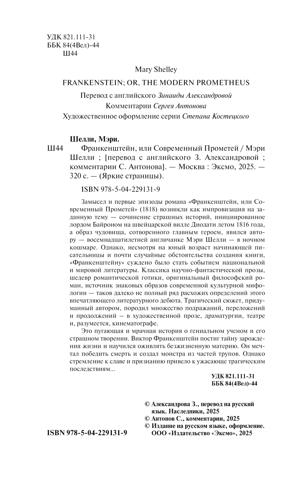 | Название в оригинале | Frankenshtein Ili Sovremenniy Prometei |