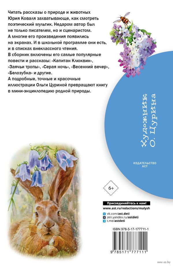 Читать рассказы о природе и животных Юрия Коваля захватывающе, как смотреть поэтический мультик. Недаром автор был не только писателем, но и сценаристом. А многие его произведения появились на экранах. И в школьной программе они есть, и в списках внеклассного чтения. В сборник включены его самые популярные повести и рассказы: "Капитан Клюквин", "Заячьи тропы", "Серая ночь", "Весенний вечер", "Белозубка" и другие. А подробные, точные и красочные иллюстрации Ольги Цуриной превращают книгу в мини-энциклопедию родной природы.