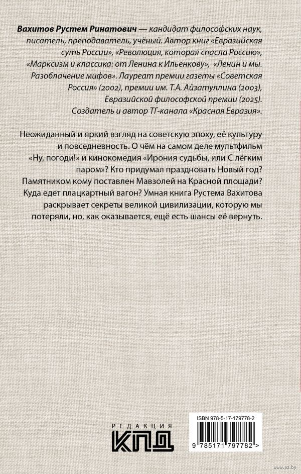 Неожиданный и яркий взгляд на советскую эпоху, её культуру и повседневность. О чём на самом деле мультфильм "Ну, погоди!" и кинокомедия "Ирония судьбы, или С лёгким паром"? Кто придумал праздновать Новый год? Памятником кому поставлен Мавзолей на Красной площади? Куда едет плацкартный вагон? Умная книга Рустема Вахитова раскрывает секреты великой цивилизации, которую мы потеряли, но, как оказывается, ещё есть шансы её вернуть..