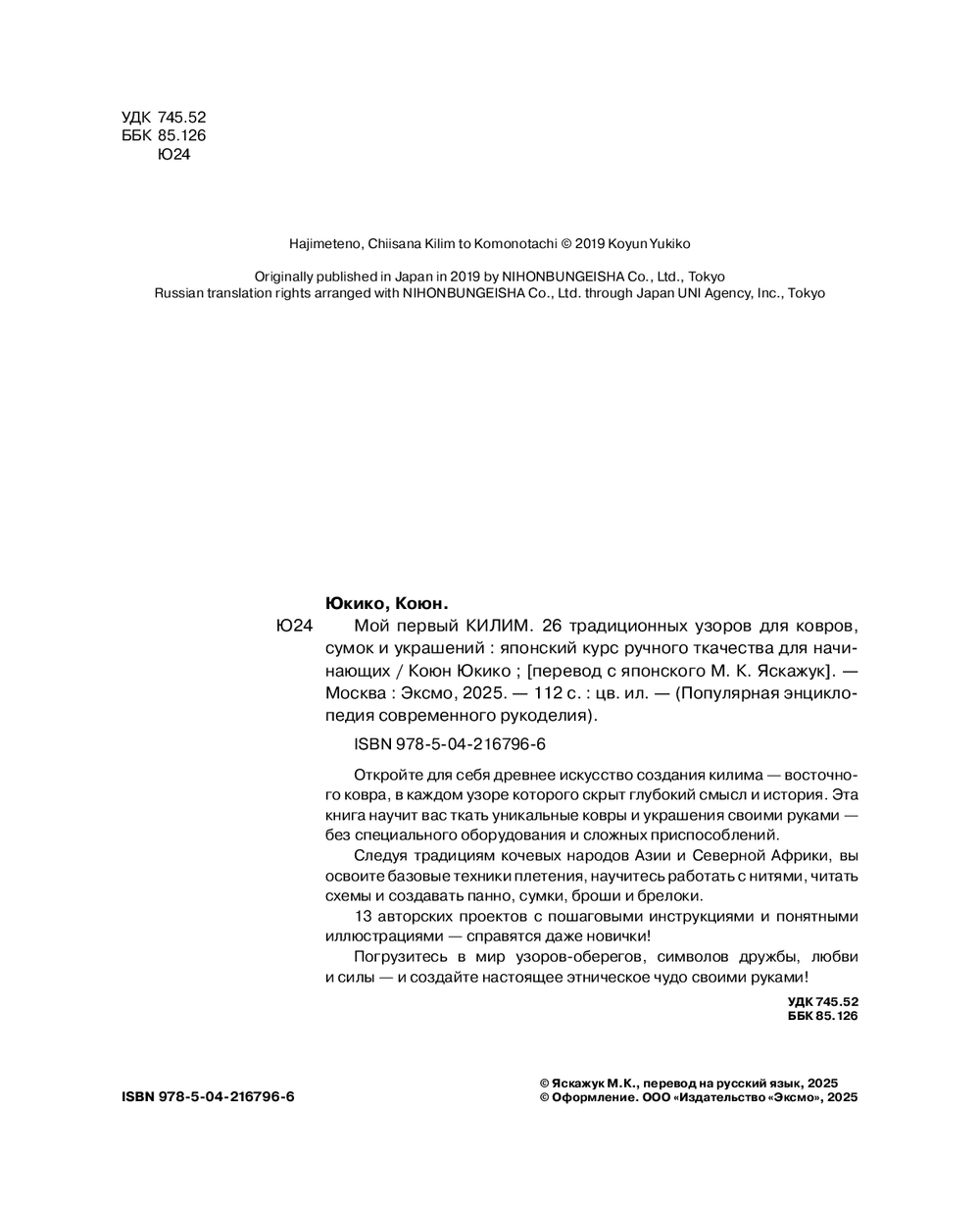 Мой первый КИЛИМ. 26 традиционных узоров для ковров, сумок и украшений. Японский курс ручного ткачества для начинающих