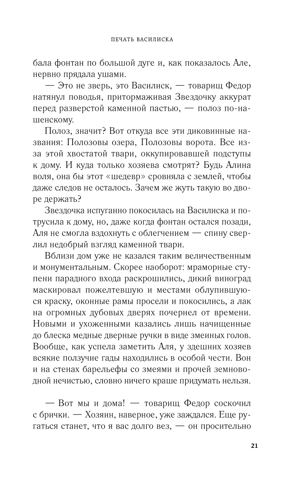 В имение "Полозовы ворота" Алю пригласил родной дед, о существовании которого молодая женщина и не подозревала. Она воспитывалась в детдоме, и поэтому очень обрадовалась появлению родственника. Кстати, чрезвычайно своевременному – ей как раз необходимо спрятаться и затаиться. Однако попав в имение, Аля понимает: что-то здесь не чисто. В этих краях существует легенда о пробуждении Василиска, который явится затем, чтобы забрать причитающееся ему. Неужели дед пригласил к себе внучку с какой-то тайной целью?..