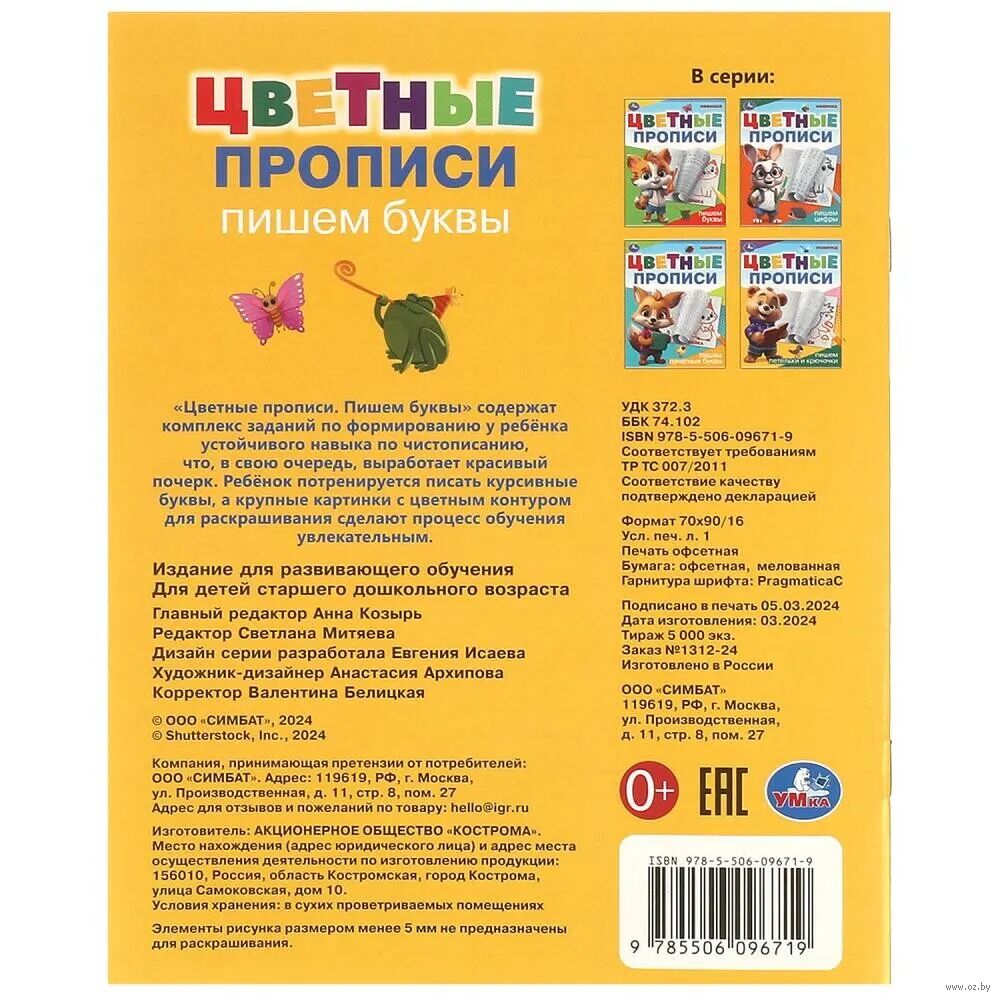 Серия прописей содержит комплекс упражнений по формированию у ребенка устойчивого навыка по чистописанию. Это, в свою очередь, поможет ему выработать красивый почерк. С помощью данной тетради дошкольник потренируется писать курсивные буквы, а большие картинки с цветным контуром для раскрашивания сделают процесс обучения еще более интересным и увлекательным.