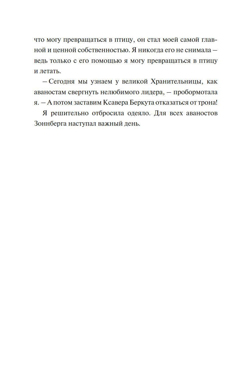 Они обычные люди – но только на первый взгляд. Они бережно хранят свой секрет, ведь если кто-то узнает правду, то их будущее окажется под угрозой. Полёт, свобода и магия – это и есть жизнь аваностов, людей с даром превращаться в птиц. Но однажды над ними нависает смертельная опасность, и спасти их может только одна застенчивая девочка…