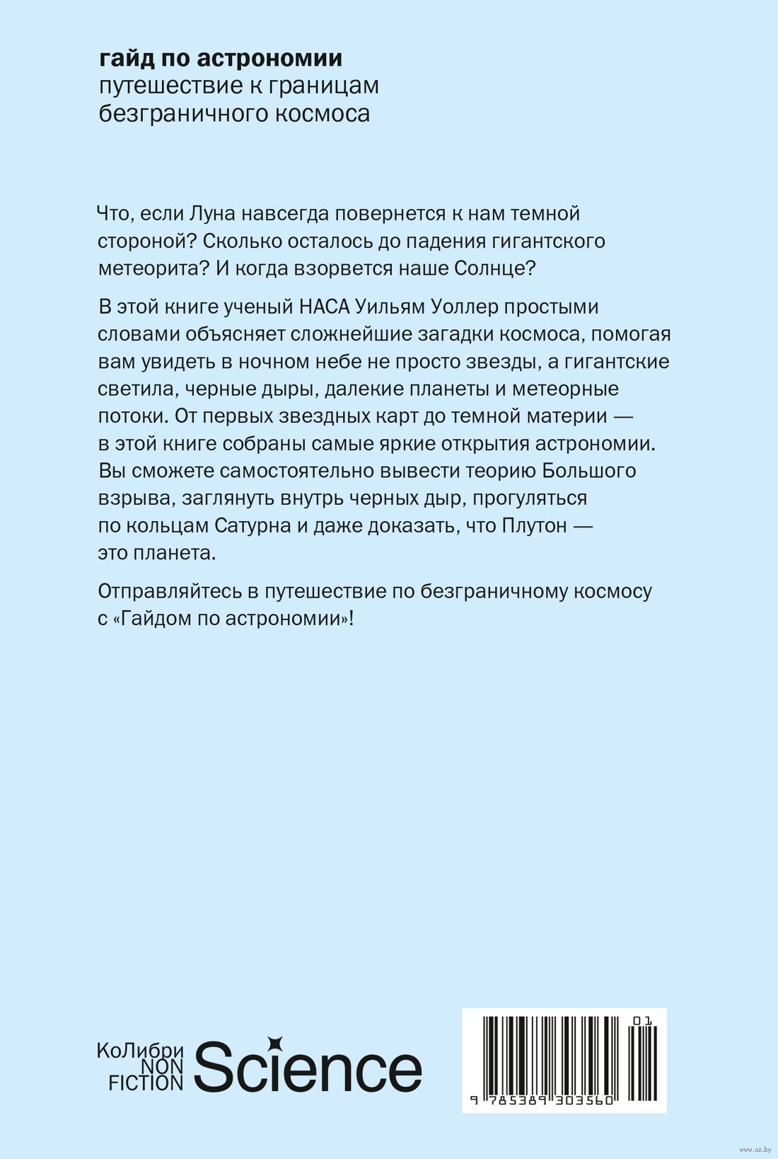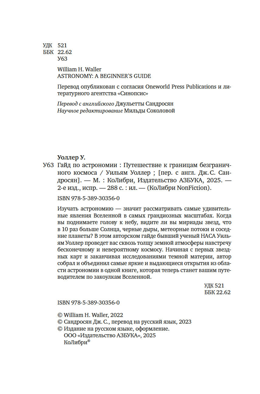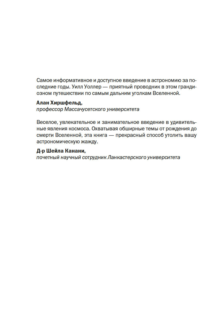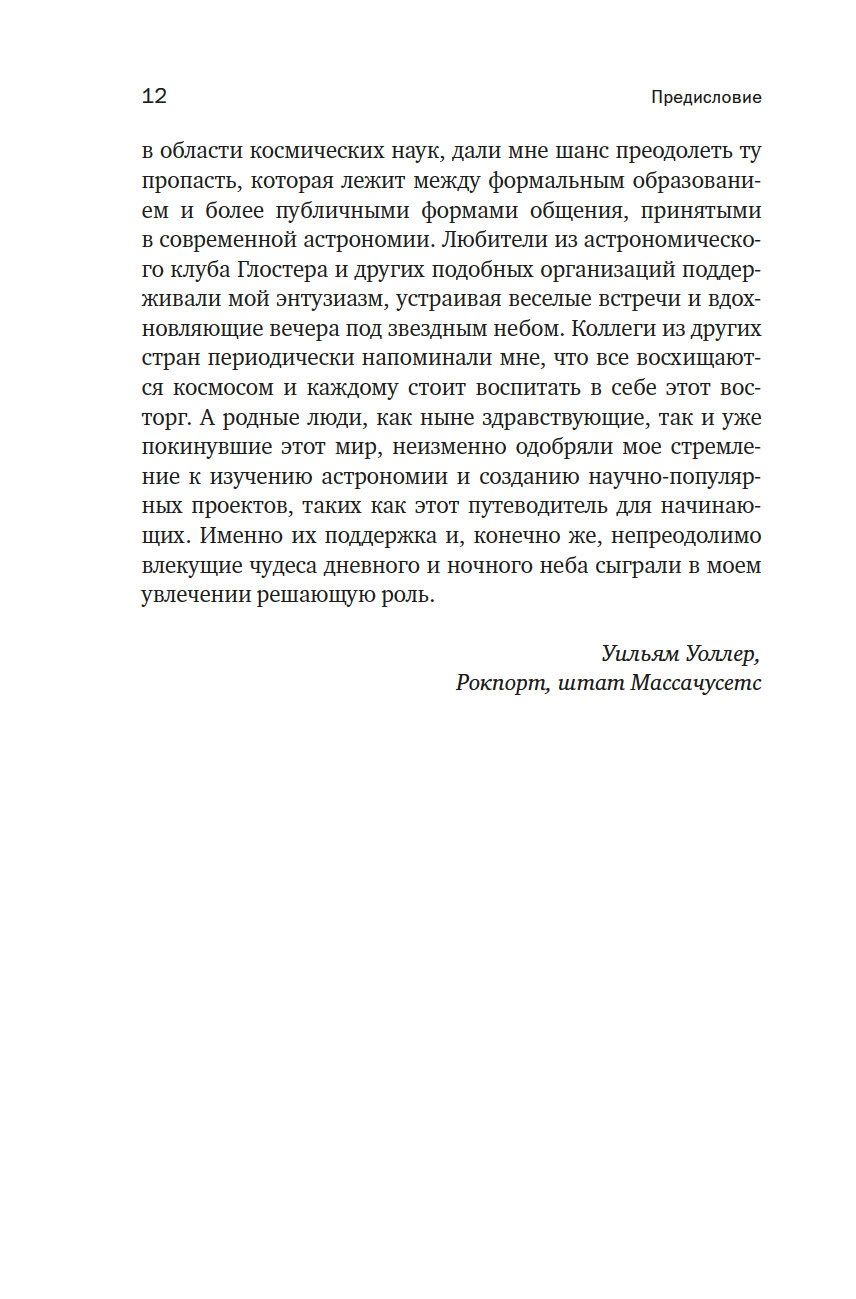 Изучать астрономию – значит рассматривать самые удивительные явления Вселенной в самых грандиозных масштабах. Когда вы поднимаете голову к небу, видите ли вы мириады звезд, что в 10 раз больше Солнца, черные дыры, метеорные потоки и соседние планеты? В этом авторском гайде бывший ученый НАСА Уильям Уоллер проведет вас сквозь толщу земной атмосферы навстречу бесконечному и невероятному космосу. Начиная с первых звездных карт и заканчивая исследованиями темной материи, автор собрал и объединил самые яркие и выдающиеся открытия из области астрономии в одной книге, которая теперь станет вашим путеводителем по закоулкам Вселенной.