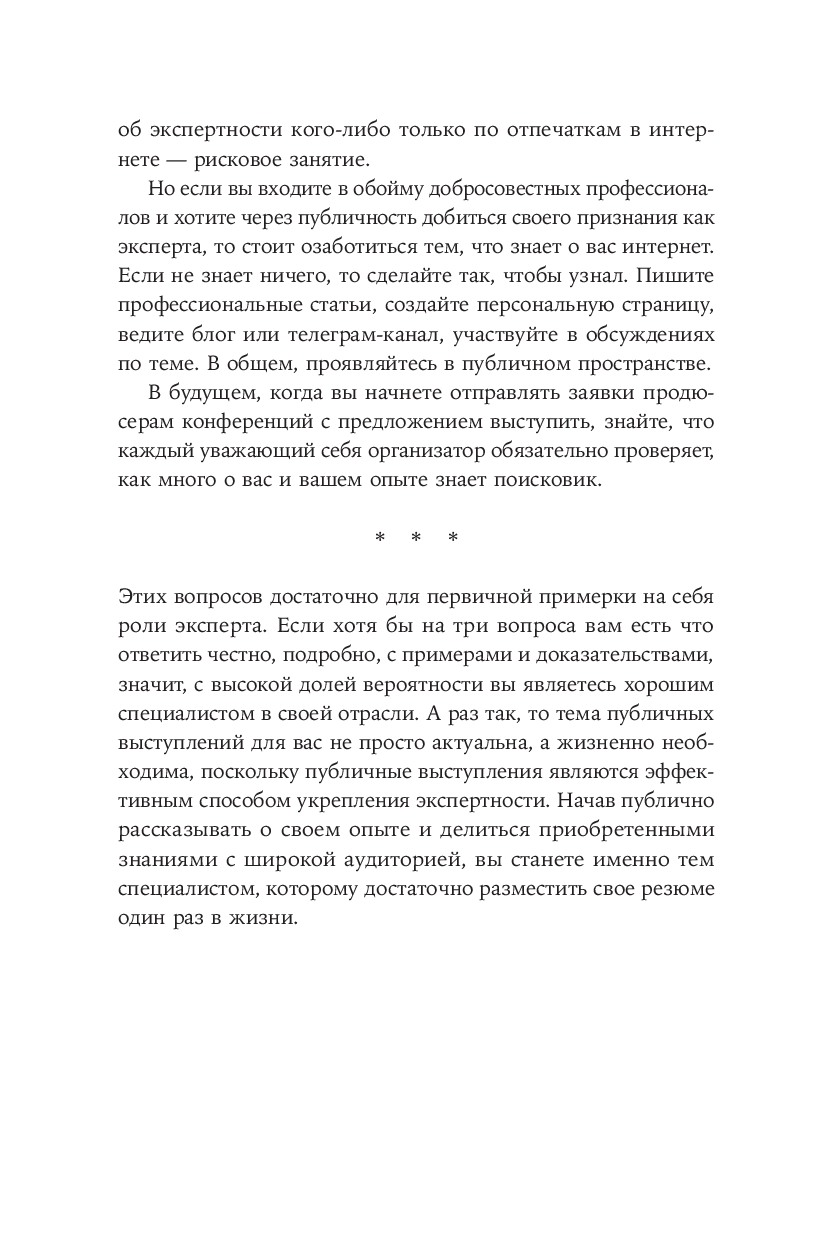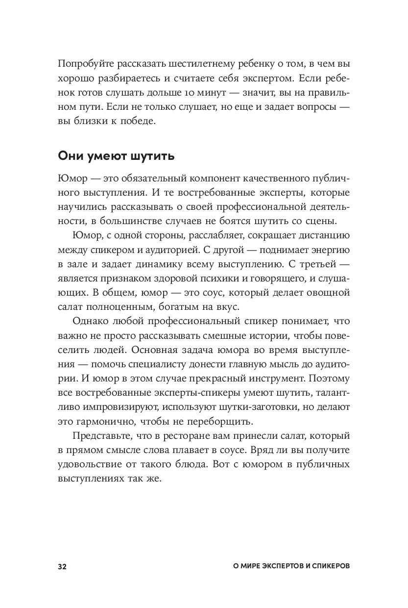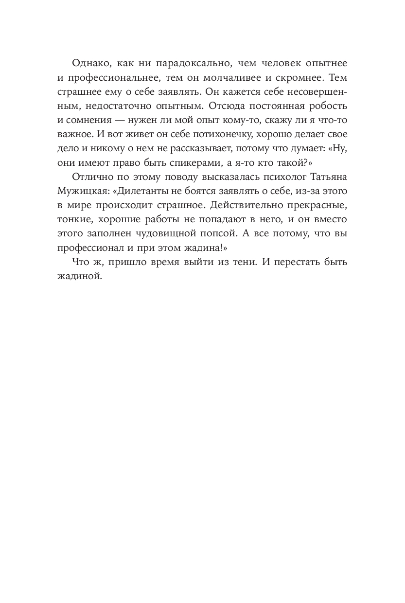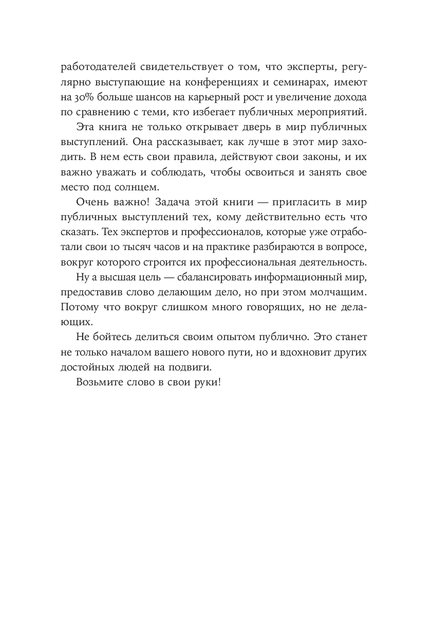 Книга адресована тем, кто хочет поделиться своим профессиональным опытом с аудиторией, но не знает, как стать успешным спикером.