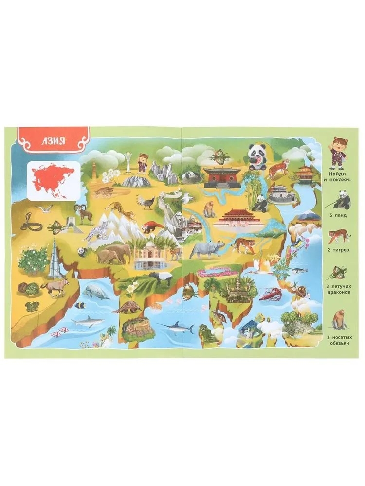 Книга-брошюра "Виммельбух. Вокруг света" из серии "Найди и покажи" станет отличным развивающим подарком для ребёнка: