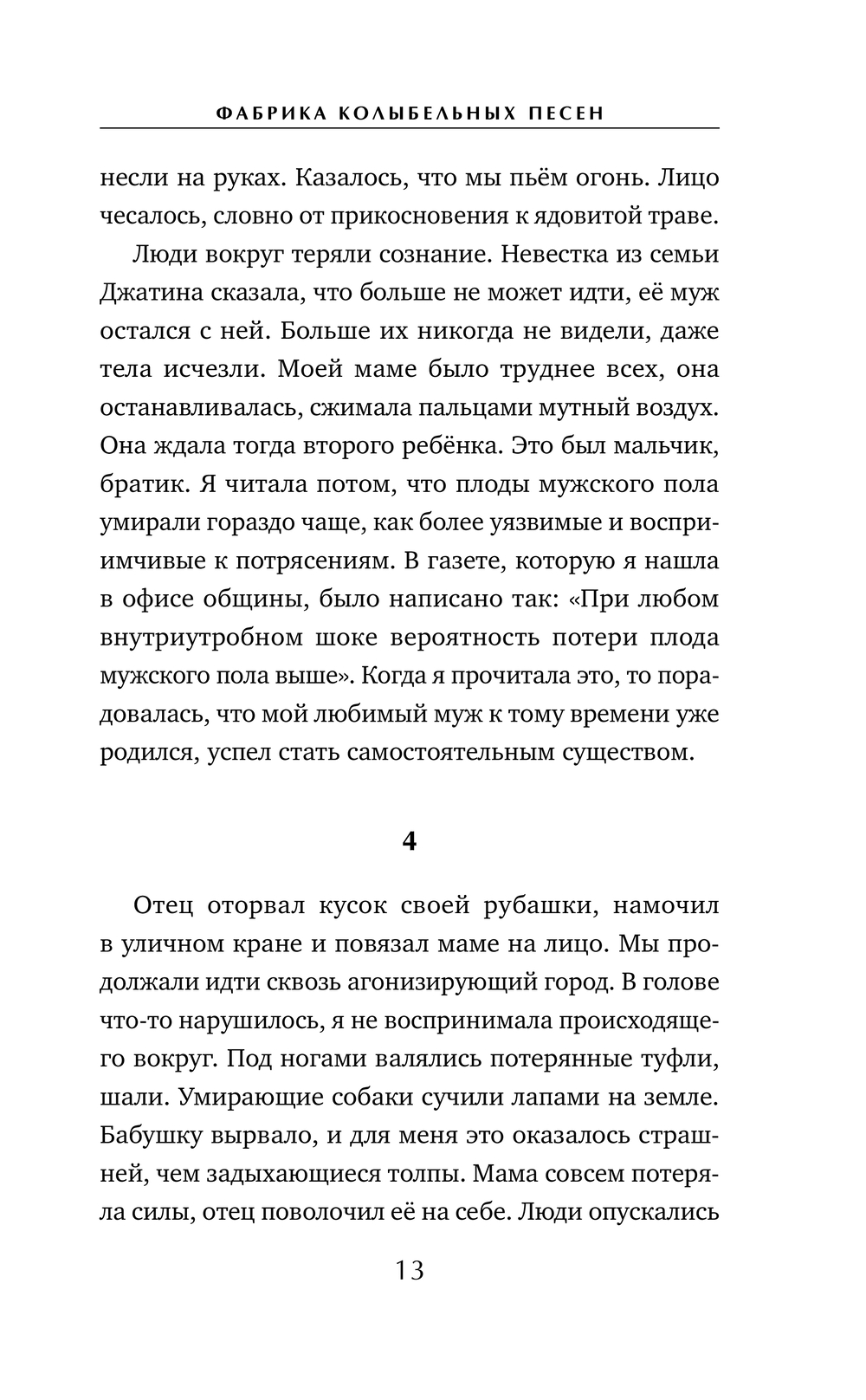 "Фабрика колыбельных песен" – философский роман-мозаика о цене материнства, справедливости, любви и свободе. История звучит голосами всех участников, но окончательное решение – кто прав – останется за читателем.