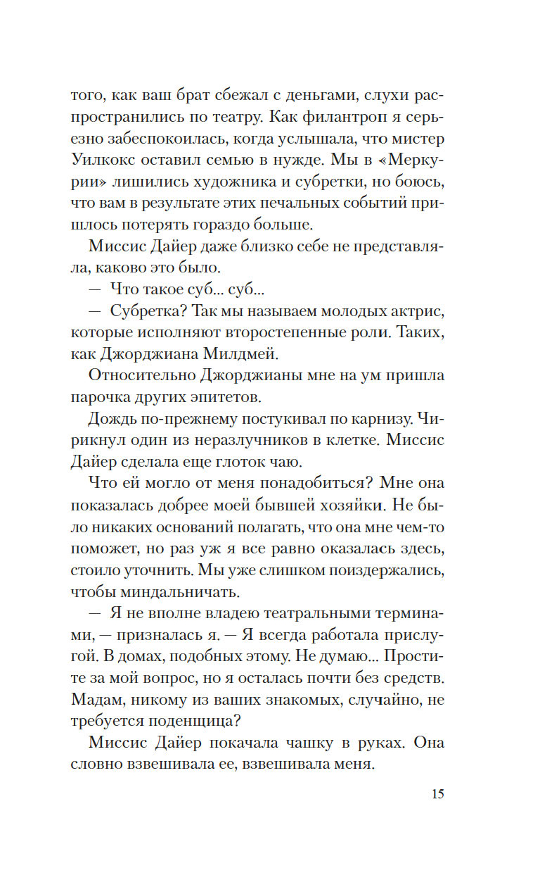 Викторианский Лондон. После ухода отца, смерти матери и предательского бегства старшего брата Грега вся забота о младшей сестре и братьях ложится на хрупкие плечи юной Дженни Уилкокс. К счастью, ей внезапно улыбается удача – Сильвия, хозяйка театра "Меркурий", берет ее на работу костюмершей. Дженни не боится ни тяжелой работы, ни дурных предзнаменований, но в театре она попадает в клубок интриг, измен и мрачных тайн. Она не верит в потусторонний мир, но разворачивающиеся одна за другой трагедии заставляют задуматься – не тяготеет ли над театром зловещее проклятие?