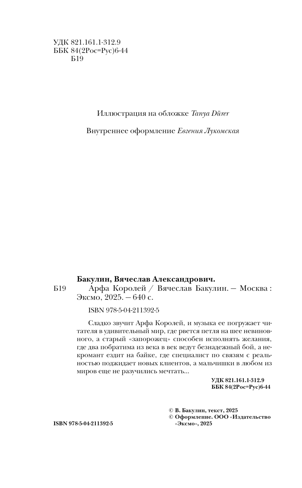 Сладко звучит Арфа Королей, и музыка ее погружает читателя в удивительный мир, где рвется петля на шее невиновного, а старый "запорожец" способен исполнять желания, где два побратима из века в век ведут безнадежный бой, а некромант ездит на байке, где специалист по связям с реальностью поджидает новых клиентов, а мальчишки в любом из миров еще не разучились мечтать…
