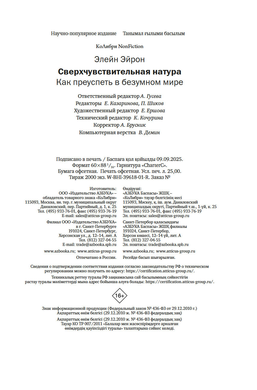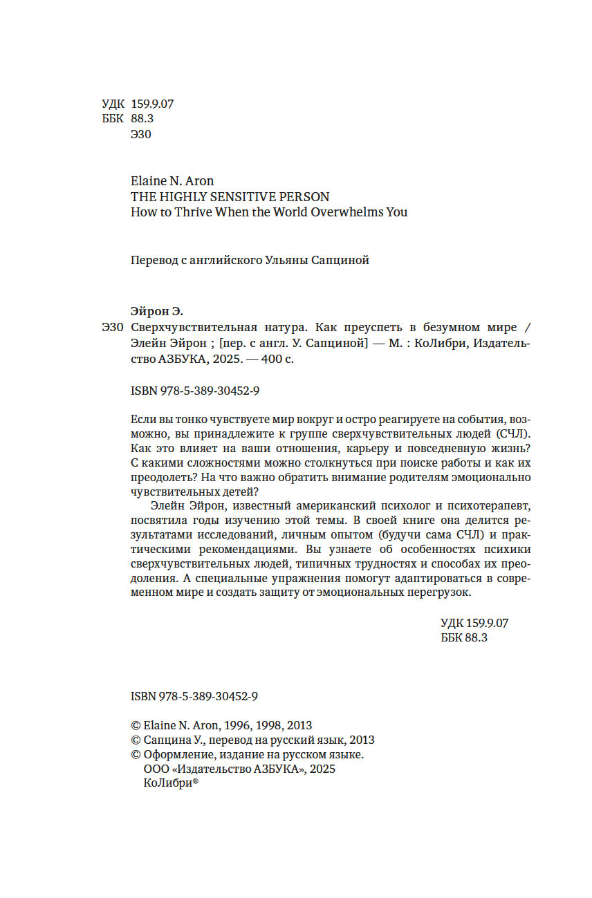 | Название в оригинале | The Highly Sensitive Person: How to Thrive When the World Overwhelms You |