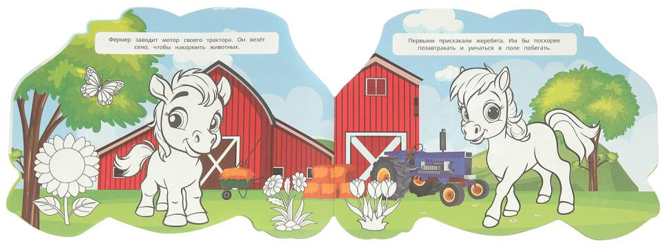 Весёлая раскраска "День на ферме" – отличный подарок для маленьких художников. Эта увлекательная раскраска про милых обитателей фермы непременно понравится вашему ребёнку. В ней он найдёт интересные картинки с чёткими контурами на цветных страницах и интересные тексты к ним. Благодаря удобному формату раскраску можно взять с собой в путешествие.