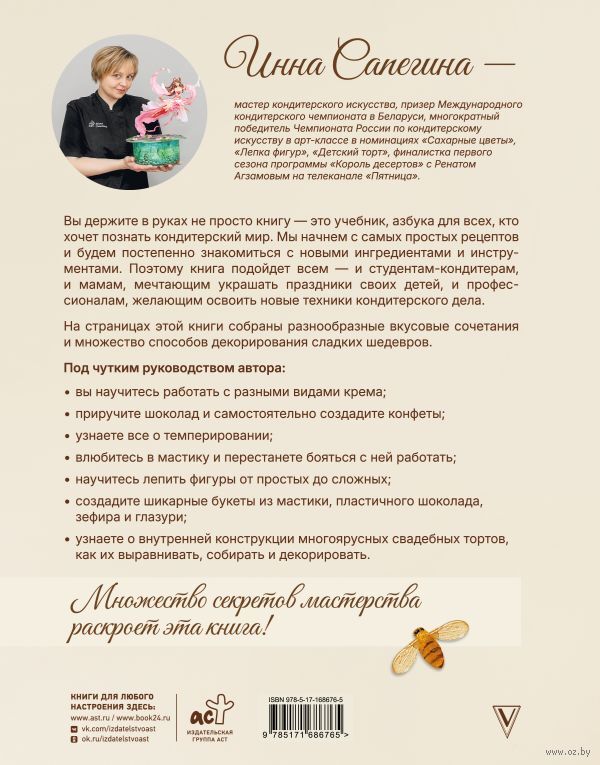 Вы держите в руках не просто книгу – это учебник, азбука для всех, кто хочет познать кондитерский мир. Мы начнём с самых простых рецептов и будем постепенно знакомиться с новыми ингредиентами и инструментами. Поэтому книга подойдёт всем, и студентам-кондитерам, и мамам, мечтающим украшать праздники своих детей, и профессионалам, желающим освоить новые техники кондитерского дела.