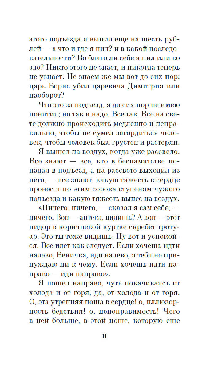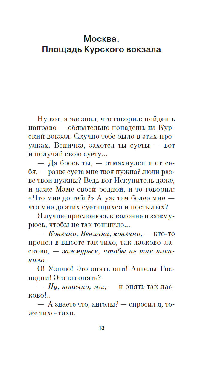 "Москва – Петушки" – культовая поэма о путешествии пьянствующего философа Венички, которое было, а может быть, и нет. Достоверно известно только одно: Кремль Веничка так и не увидел, а на Курский вокзал попал. Ведь Веничку ждут в Петушках девушка с глазами белого цвета и самый кроткий из всех младенцев, знающий букву "ю". Герой Ерофеева – библейский мученик, погрязший в хаосе советской действительности, но стремящийся к высшей жизни. На этом пути его сопровождают ангелы и алкогольные напитки разной степени крепости. Достигнет ли Веничка Петушков? Пусть это останется тайной.