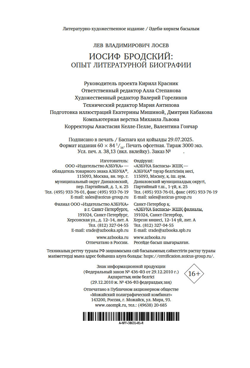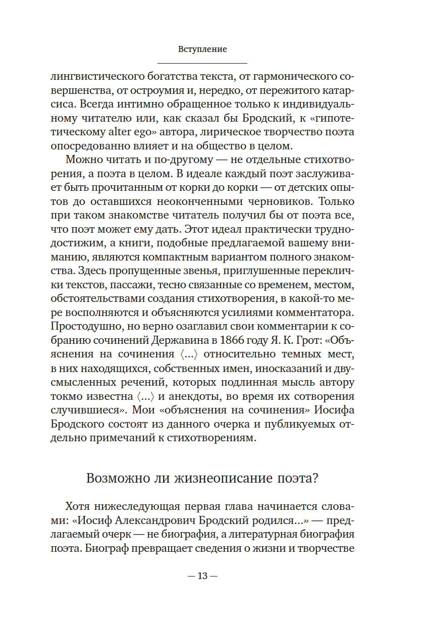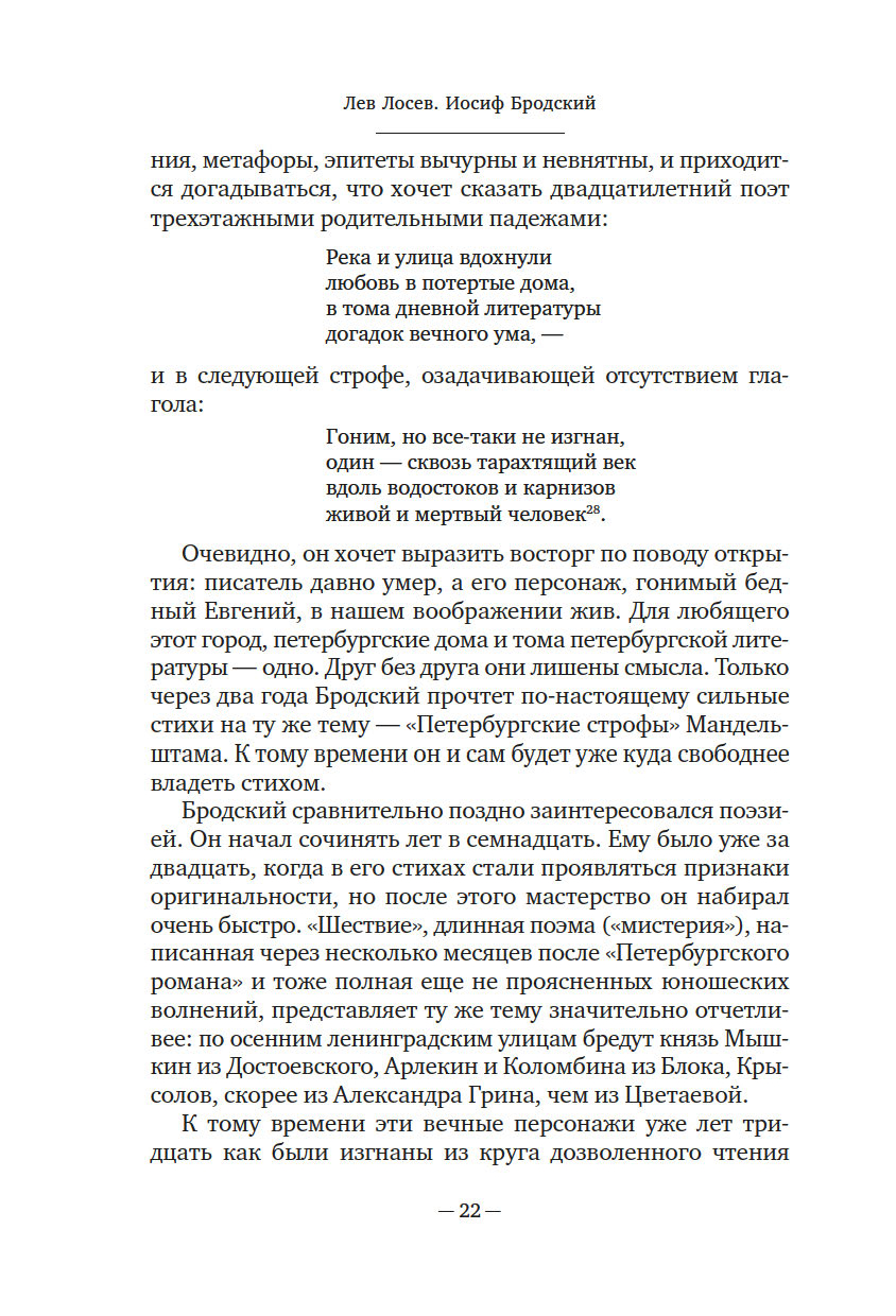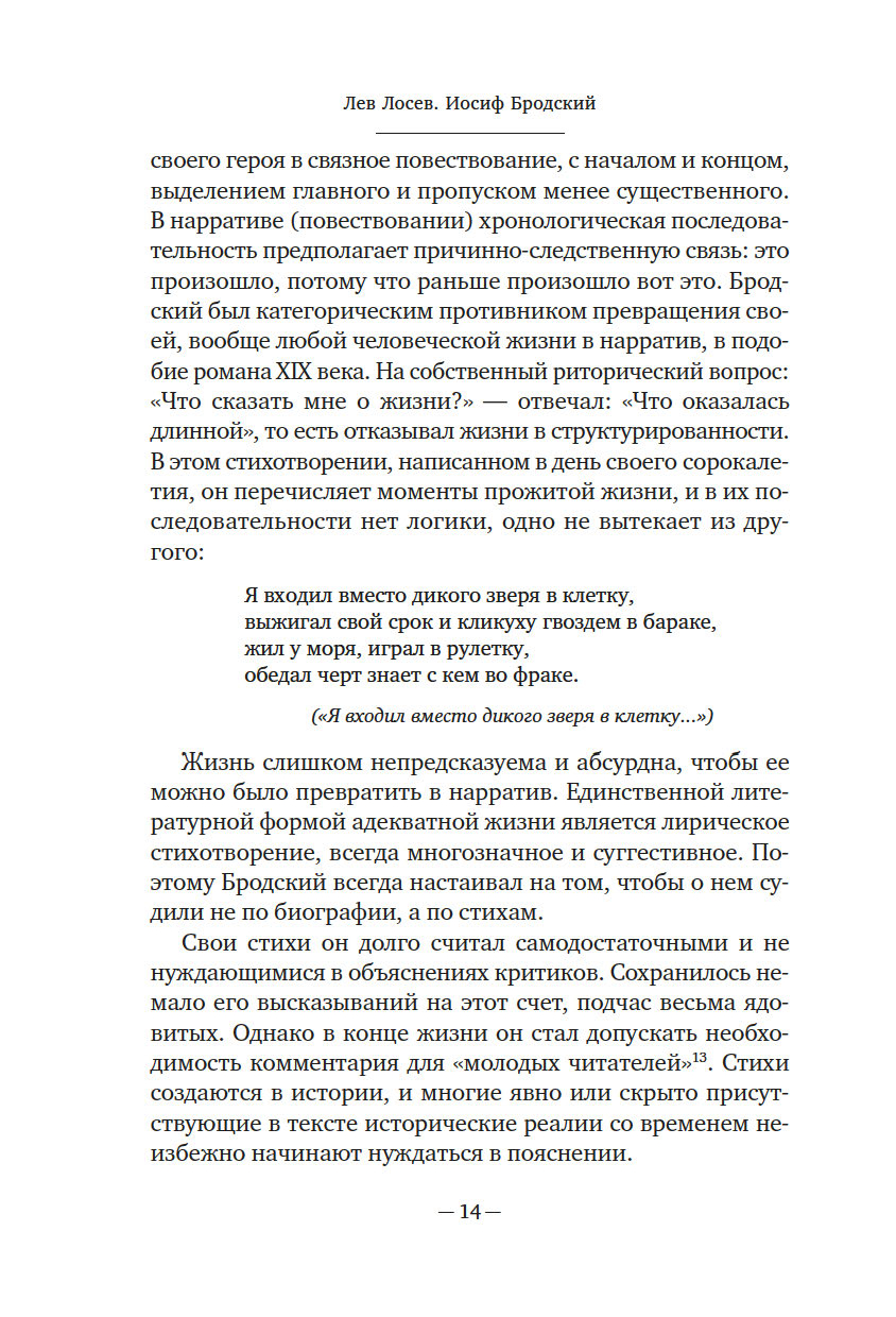 Книга об Иосифе Бродском, написанная Львом Лосевым, впервые была издана в 2006 году и сразу стала очень значимым культурным событием. Невозможно свести биографию поэта столь исключительного дарования к некой сумме более или менее известных фактов. Жизненный путь Иосифа Бродского неотделим от пути литературного, их взаимовлияние бесспорно, драматические повороты в судьбе поэта были обусловлены в первую очередь его стремлением к творческой свободе. Льва Лосева связывала с Иосифом Бродским не только многолетняя дружба: Лосев переводил его эссеистику, был исследователем и комментатором стихотворного наследия. Своей книге Лев Лосев дал подзаголовок "Опыт литературной биографии", соединив биографическую канву с различными аспектами творческой биографии Бродского, обратившись к истокам его поэтики, этическому и эстетическому кредо, влиянию литературной традиции и т. д. Бродский предстает не только исключительно мужественным человеком, но и оригинальным мыслителем, выдающимся мастером слова.
