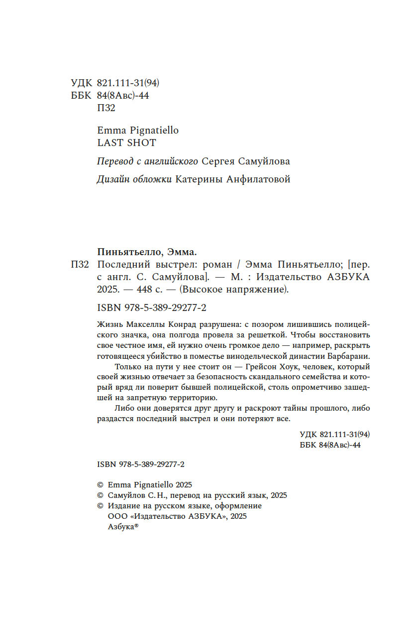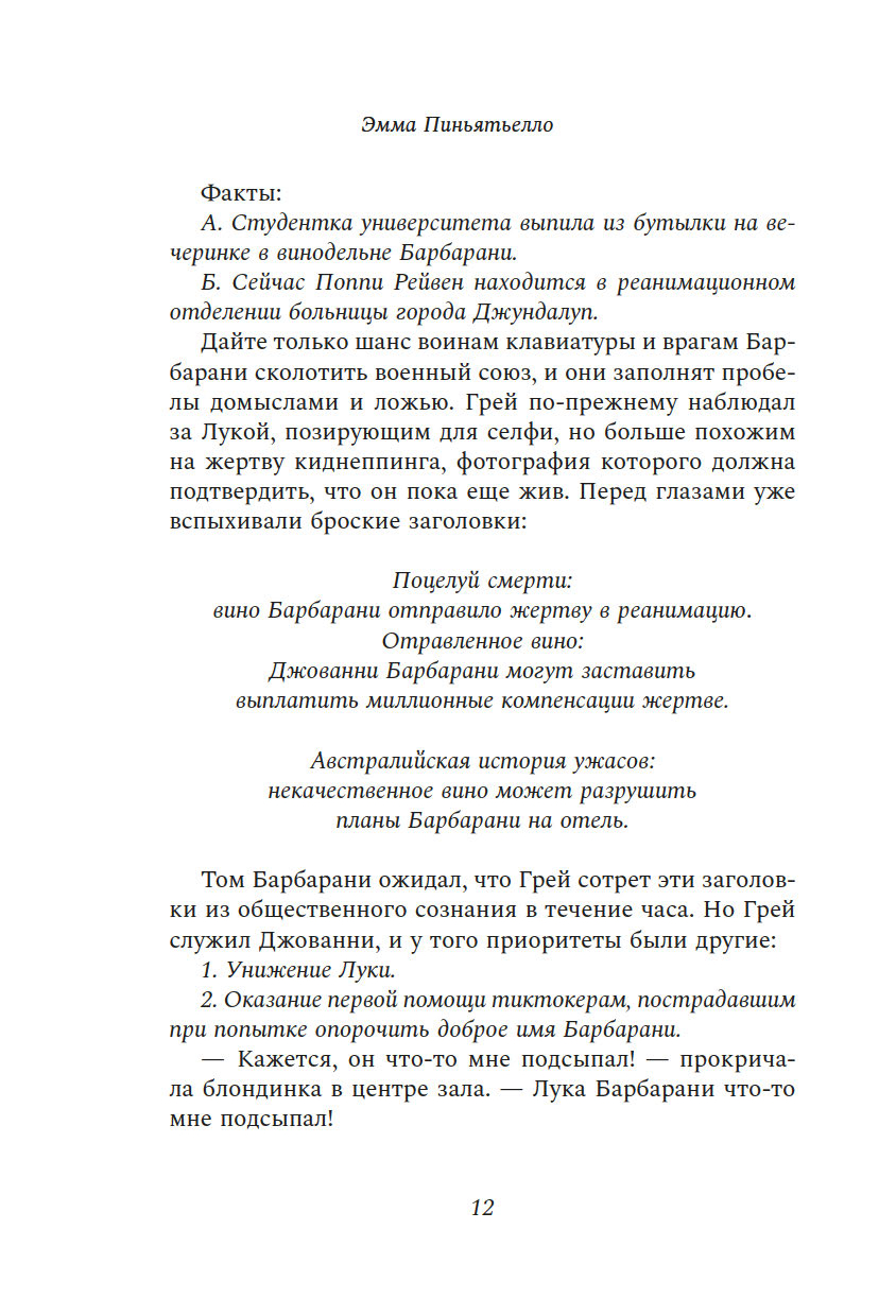 Жизнь Макселлы Конрад разрушена: с позором лишившись полицейского значка, она полгода провела за решеткой. Чтобы восстановить свое честное имя, ей нужно очень громкое дело – например, раскрыть готовящееся убийство в поместье винодельческой династии Барбарани.