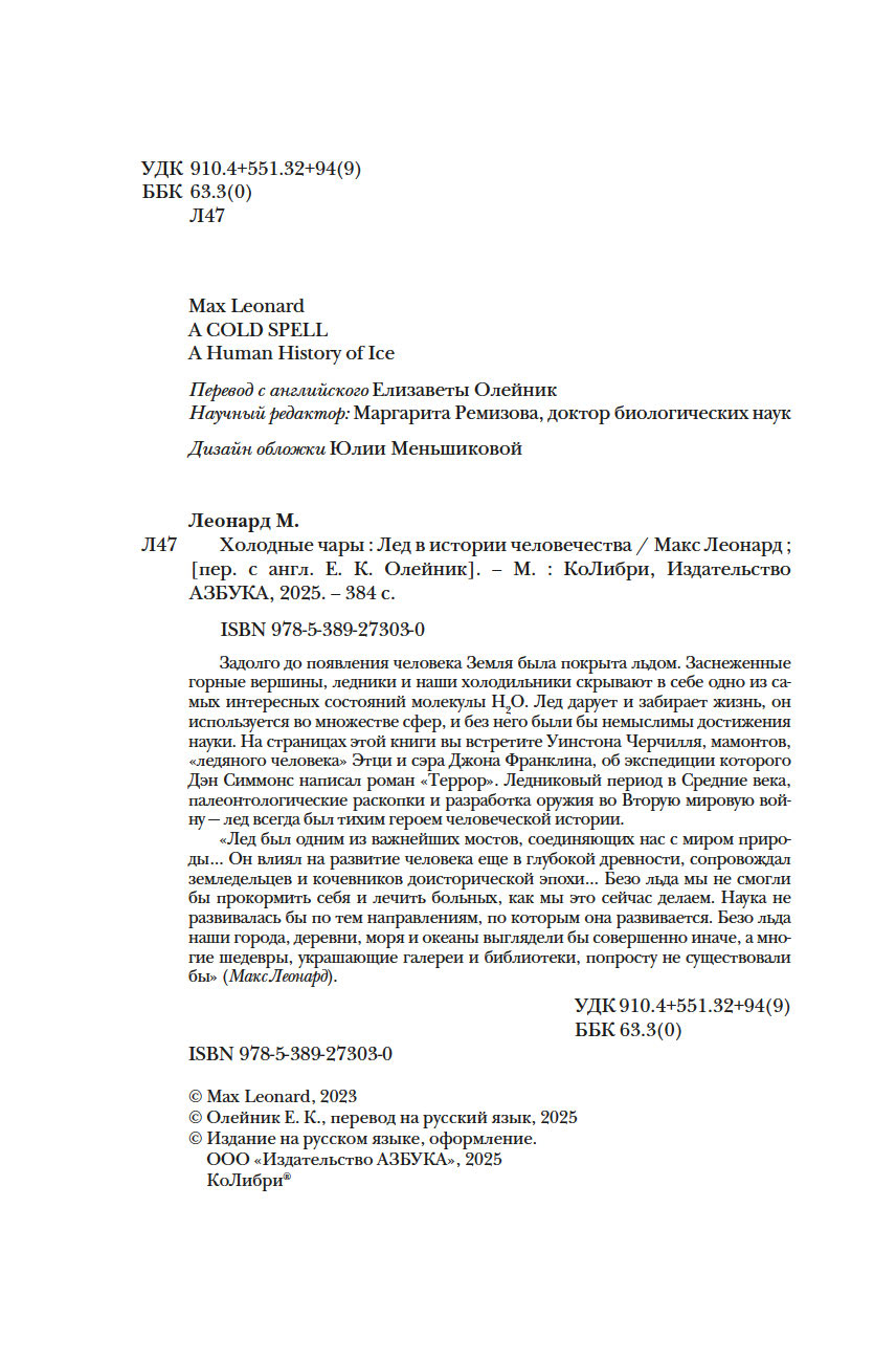 | Название в оригинале | A Cold Spell: A Human History of Ice |