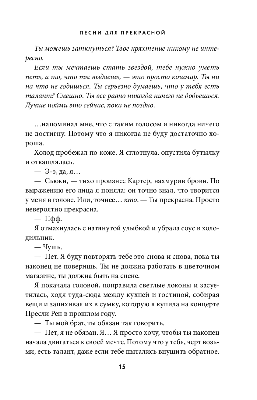Сьюки всегда пела лишь для себя. Но одна песня в цветочном магазине, тайно снятая на видео, взорвала сеть и превратила мечту в реальность. Контракт с лейблом, дебютный альбом, новая жизнь – все это кажется началом настоящей сказки. Но в студии ее ждет неожиданная встреча: новый соавтор – Ривер, тот самый, кто когда-то был слишком близок. Их общее прошлое может разрушить все, что Сьюки только начинает строить…