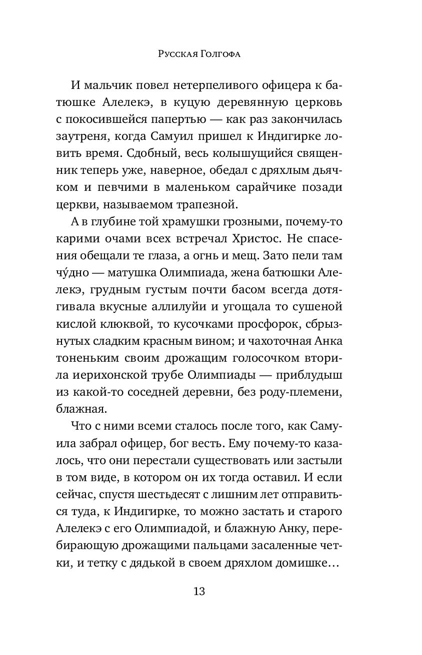 Мальчиком Самуила забрал царский офицер из глухого селения на Крайнем Севере, обменяв на борзых щенков, и привез в Рязанскую губернию. Судьба его до определенного момента складывалась вполне счастливо – он отучился в гимназии, получил профессию и работу, женился на хорошенькой дочери священника, сам, выйдя на пенсию, стал священнослужителем. Но жил он в эпоху больших перемен – революций, Первой мировой и Гражданской войн, слома привычного уклада жизни. Судьба Самуила Бубенцова – это судьба праведника поневоле, маленького человека, который хотел жить, служить богу и людям.