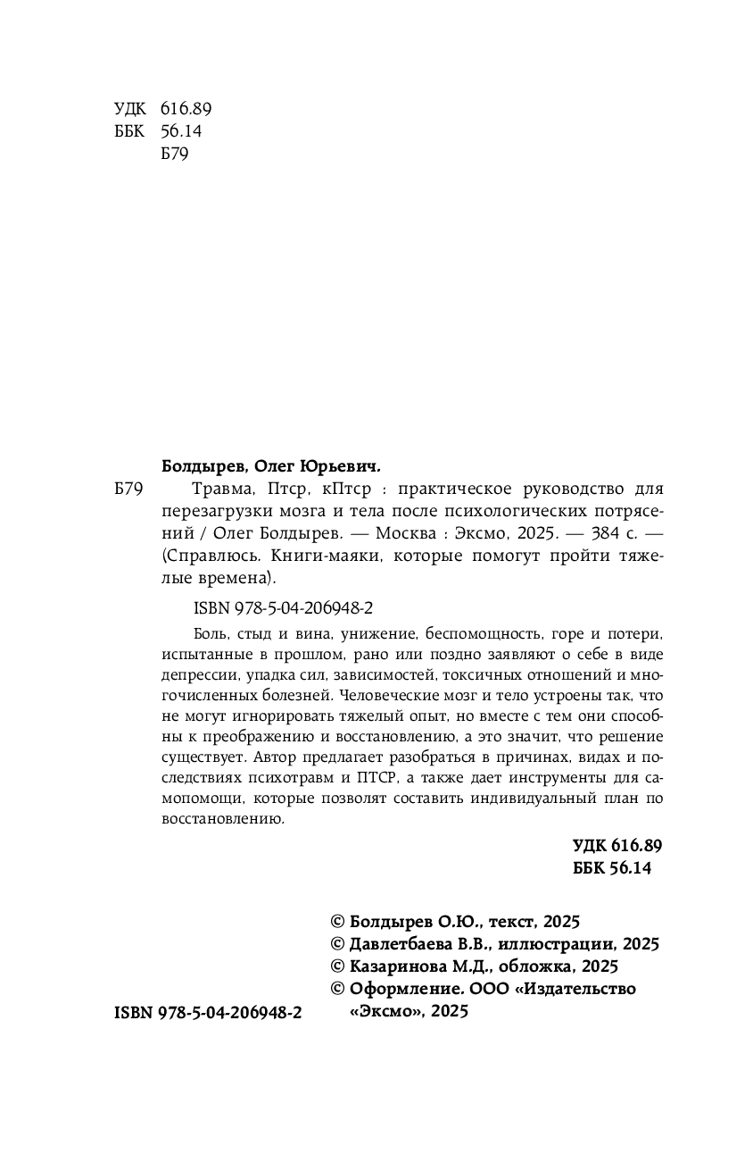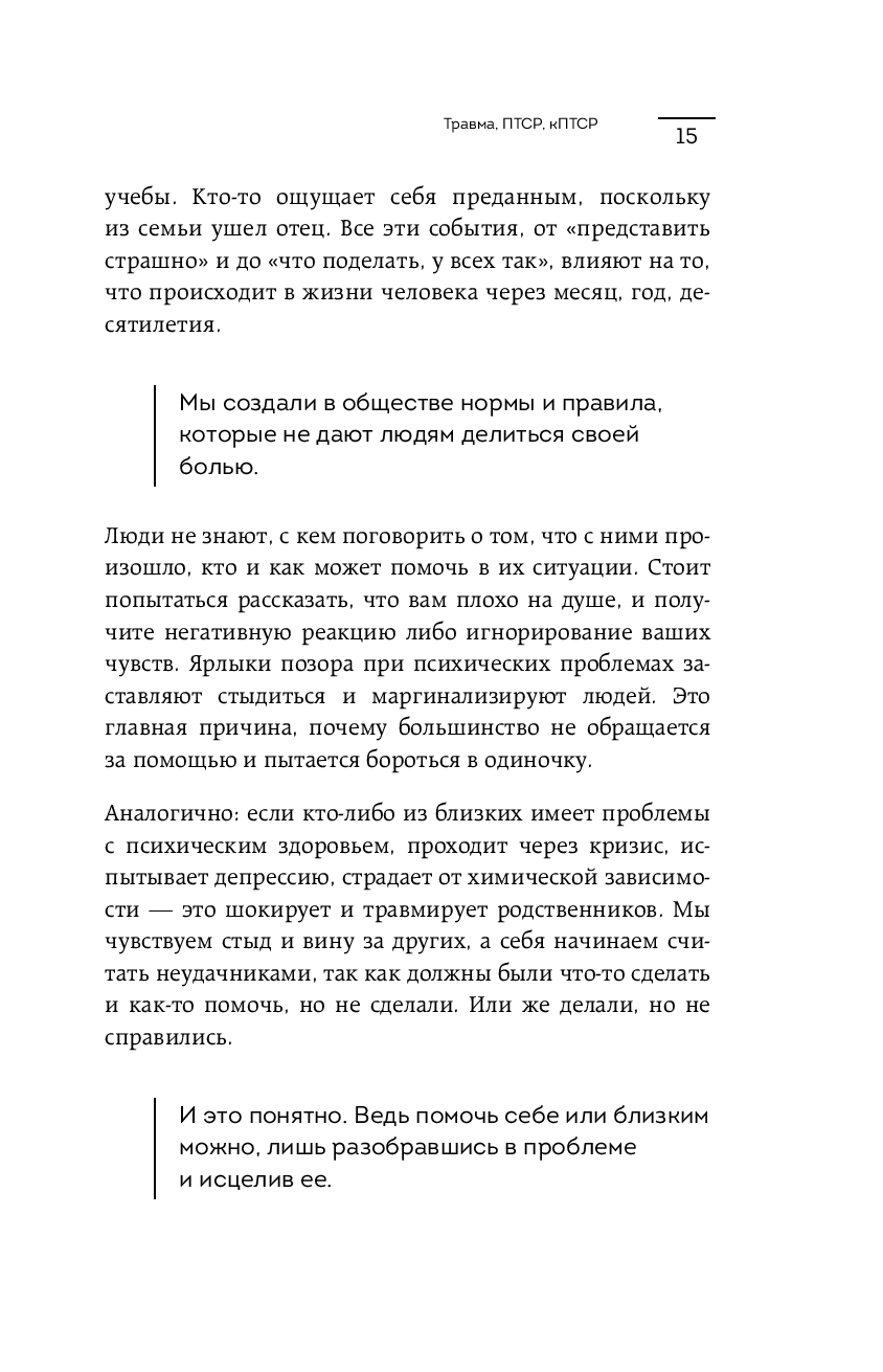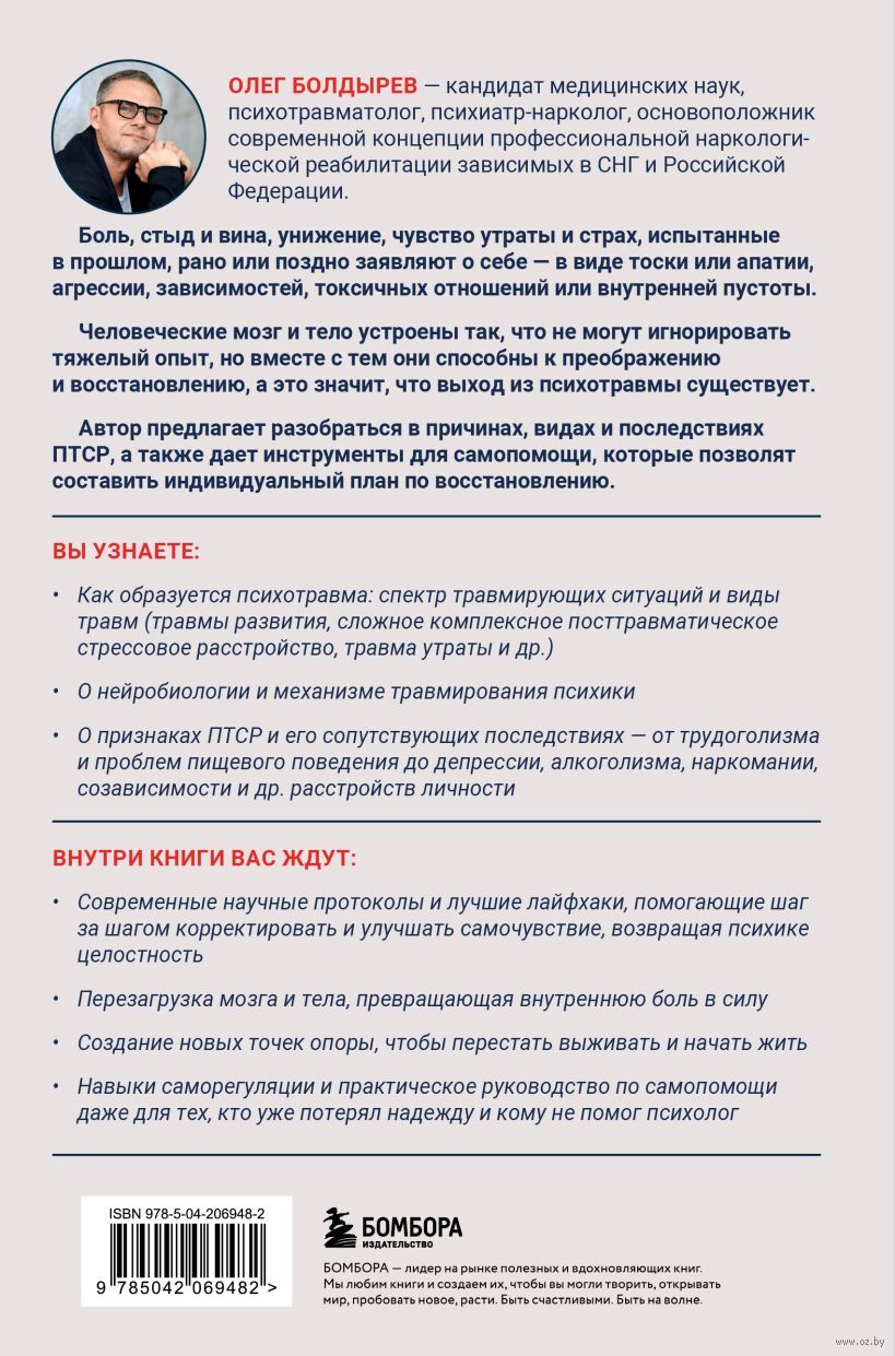 Автор книги предлагает разобраться в причинах, видах и последствиях психотравм и ПТСР, а также дает инструменты для самопомощи, которые позволят составить индивидуальный план по восстановлению.