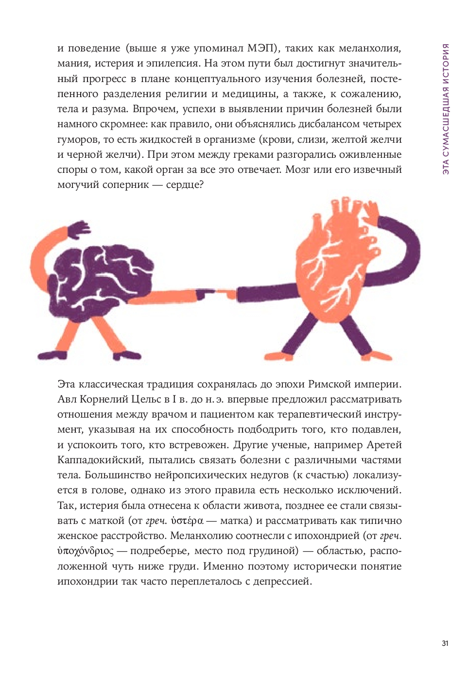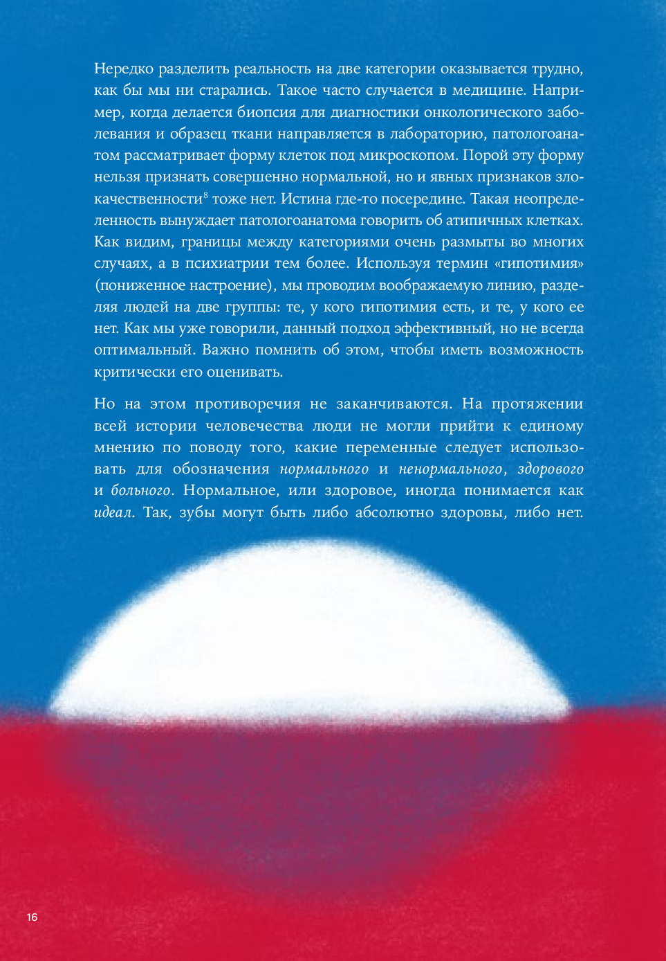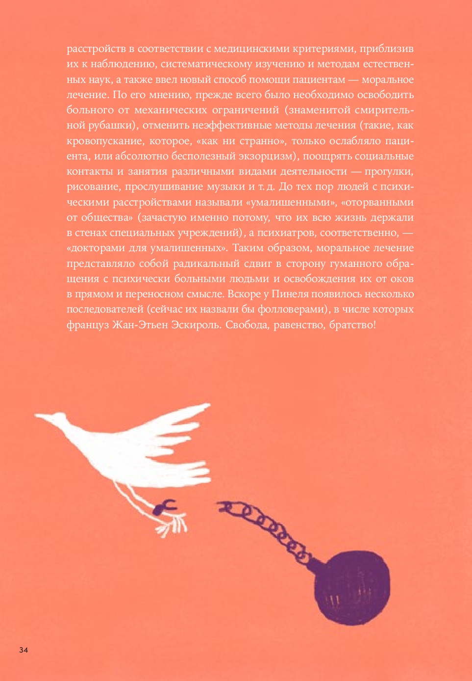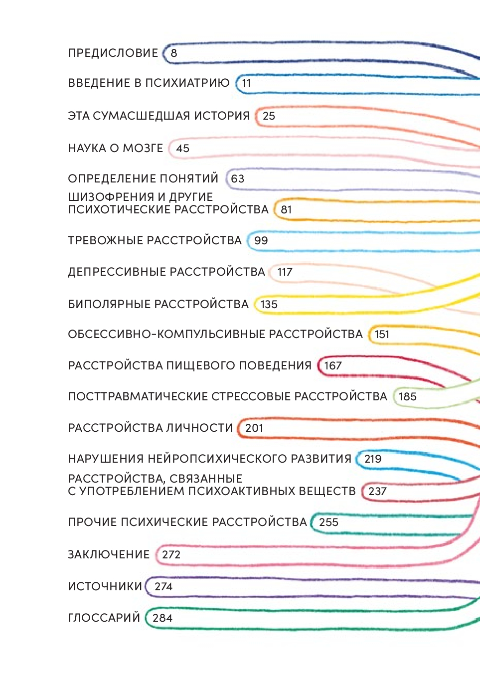 По оценкам специалистов, более миллиарда человек в мире страдают от самых разных психических расстройств: тревоги, депрессии, шизофрении, биполярного расстройства, посттравматического стресса, расстройств пищевого поведения и др. Испанский психиатр Кристиан Льяч просто и понятно рассказывает о том, что эти расстройства из себя представляют, что чувствуют люди, им подверженные, каковы основные симптомы и методы лечения таких расстройств. Автор также знакомит читателей с историей развития психиатрии как науки, дает краткие сведения об анатомии и физиологии мозга, о важных ролях биологии и генетики в формировании нервной системы человека, пишет о влиянии социума на развитие психики и о важности правильного отношения к пациентам с психическими расстройствами. Иллюстрации Валентины Сильва помогают закрепить в памяти важную информацию.