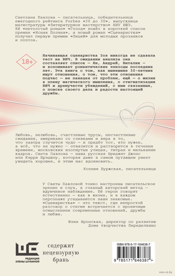 Эта книга о том, как нынешние 30-летние ищут отношения, о том, что эти отношения подчас – не панацея от проблем, ещё – о жизни в плену магического мышления, о стигматизации ВИЧ и дремучести убеждений, с ним связанных, о поиске своего дела и радости настоящей дружбы.