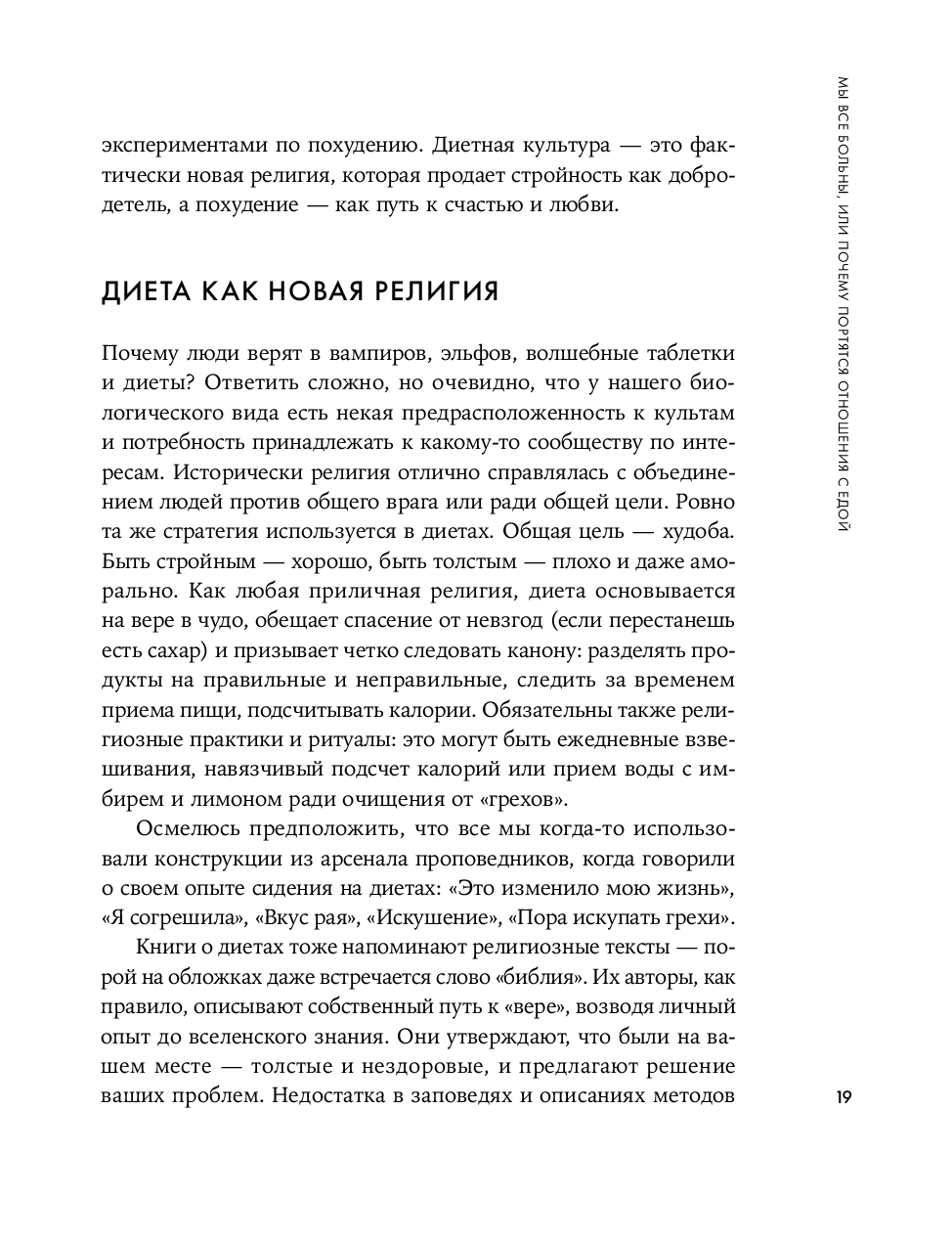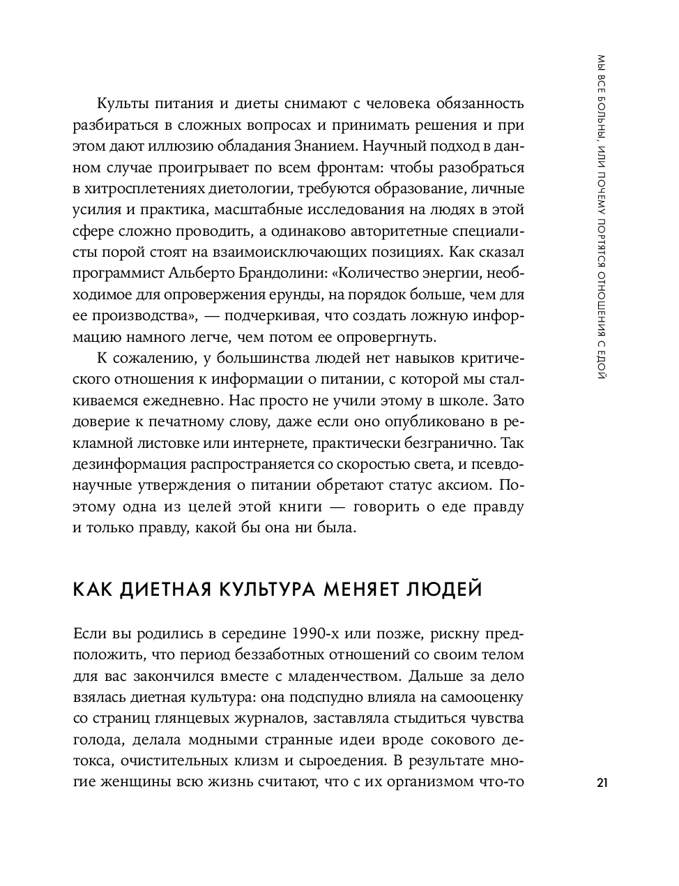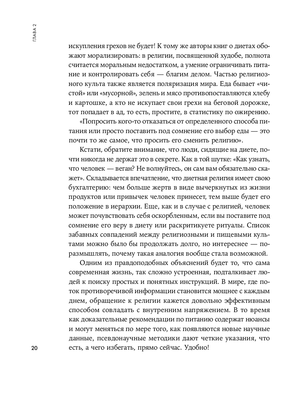 Эта книга о том, как здорово жить в мире, где еда – просто еда, а не враг, культ, испытание или наказание. Она поможет перестать переедать, обходиться без диетических шаблонов и ограничений, обрести баланс между здоровым и свободным питанием и позволить себе есть без чувства вины и тревоги.