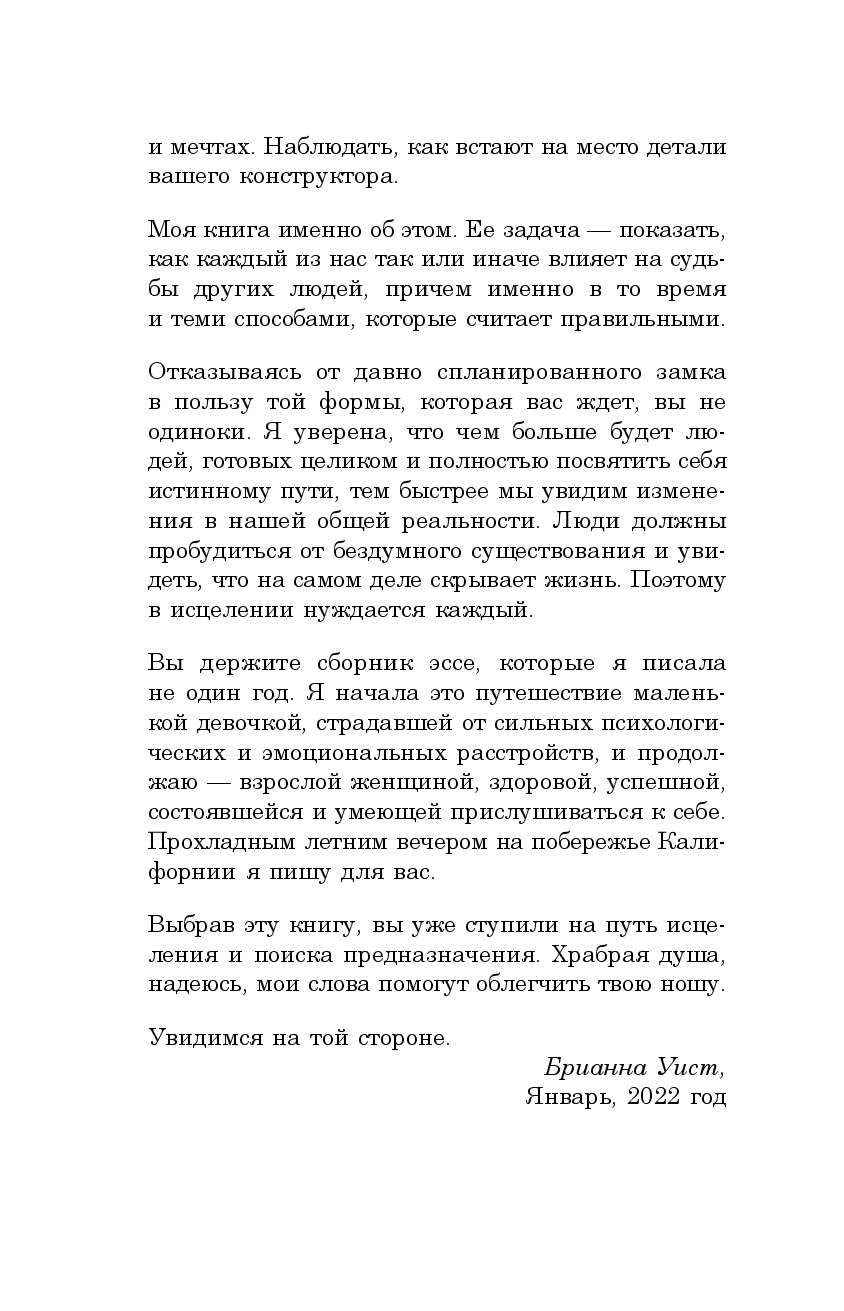 Брианна Уист, автор мировых бестселлеров и консультант Forbes, прошла через собственные кризисы и утраты и делится открытиями, которые помогли ей исцелиться и начать жизнь сначала. Это честный и реалистичный путь – без пустых обещаний, но с поддержкой и пониманием, которые нужны, чтобы сделать первый шаг.