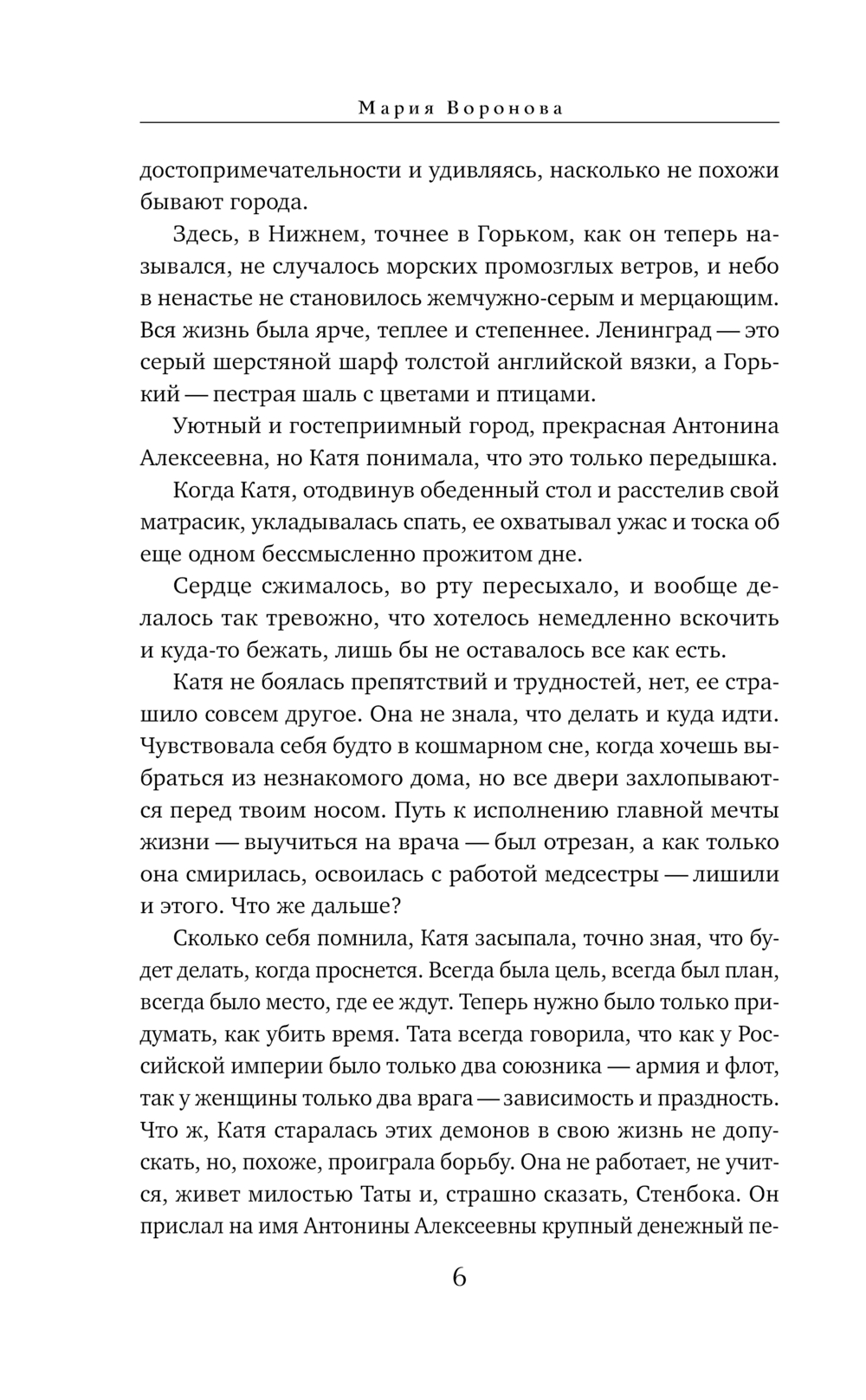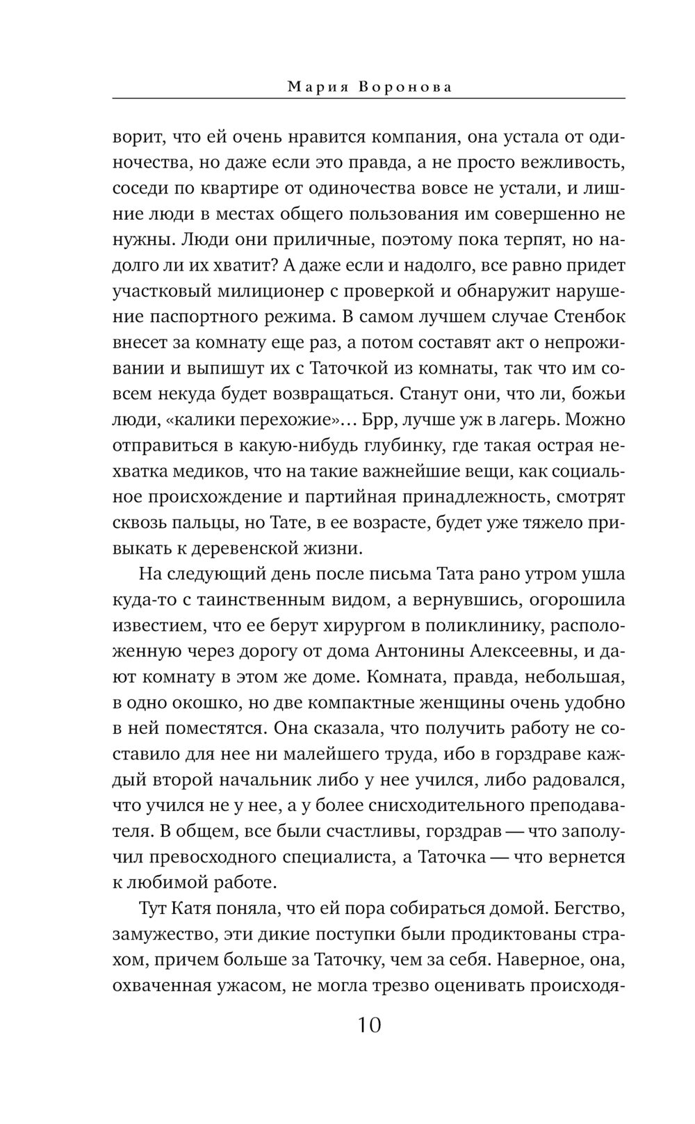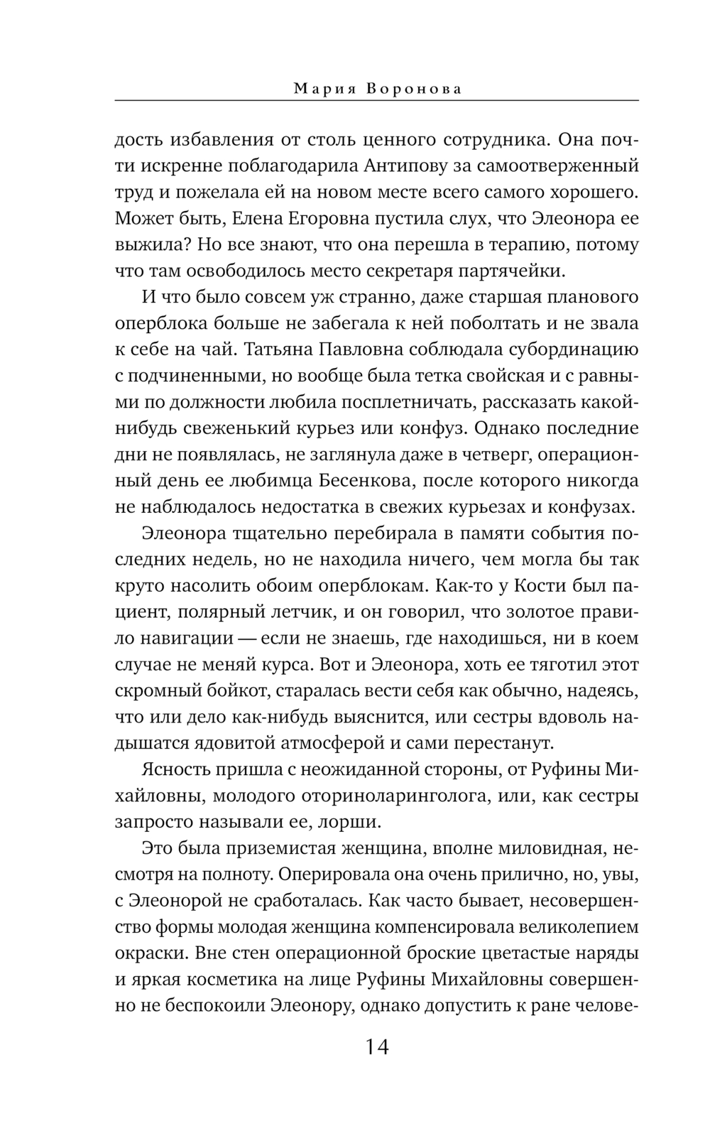Ленинградское лето 1935 года. Старшая хирургическая медсестра военной академии Элеонора Воинова усыновляет дочь врагов народа. Радость в семье омрачается тяжёлой обстановкой в обществе – после убийства Кирова усилилась борьба с троцкистами, посыпались доносы. Среди арестованных оказалась медсестра-скандалистка, которая, спасая себя, может оговорить любого. Что делать? Хватать мужа, детей – и бежать на Крайний Север?