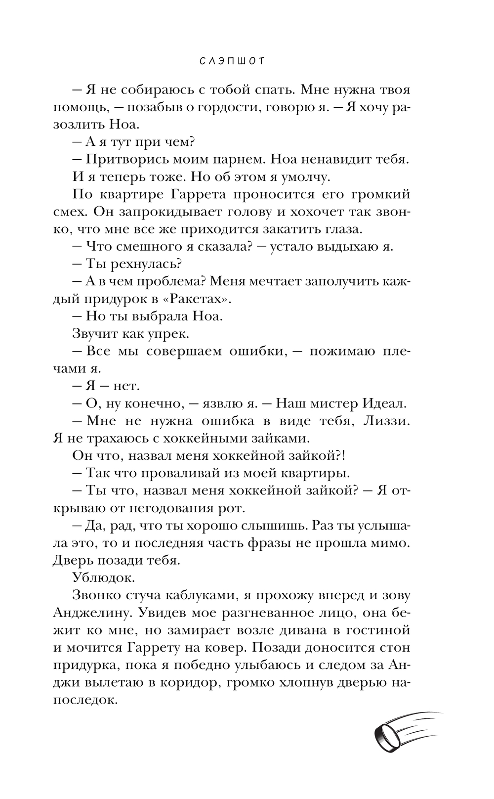 Гаррет. Дисциплина и режим – два слова, без которых я не представлял свою жизнь, пока в нее не ворвался ураган по имени Элизабет Морган. Она громкая, взбалмошная и действует мне на нервы. Ей нужно, чтобы я подыграл и притворился ее парнем. Рискну ли я нарушить ради нее собственные правила? Ведь наша игра будет опаснее самого быстрого слэпшота, а у меня есть все шансы потерпеть неудачу.