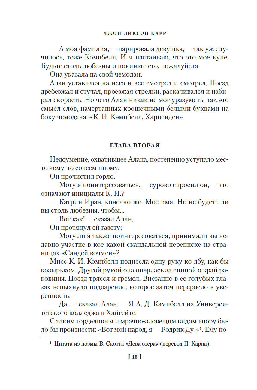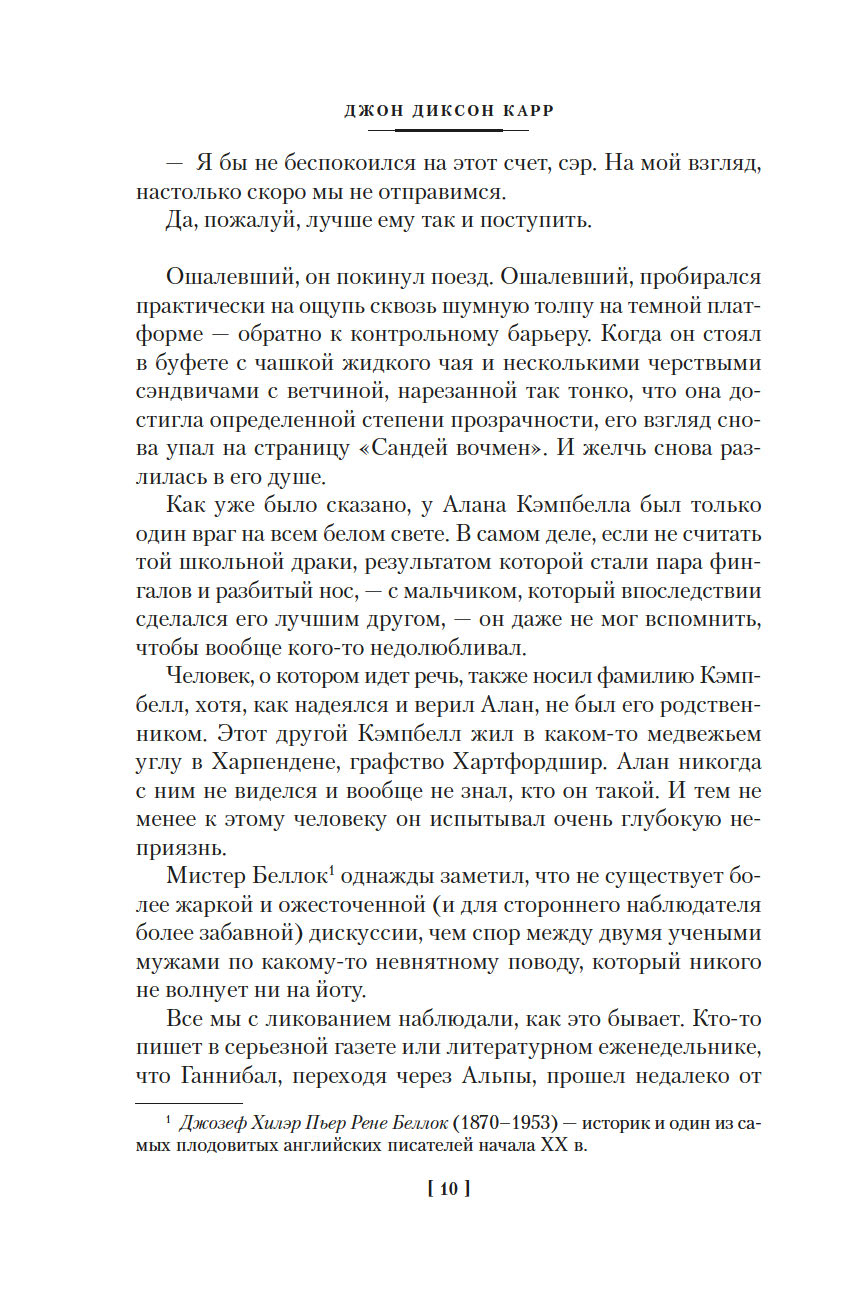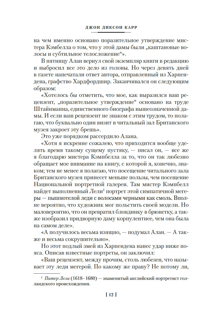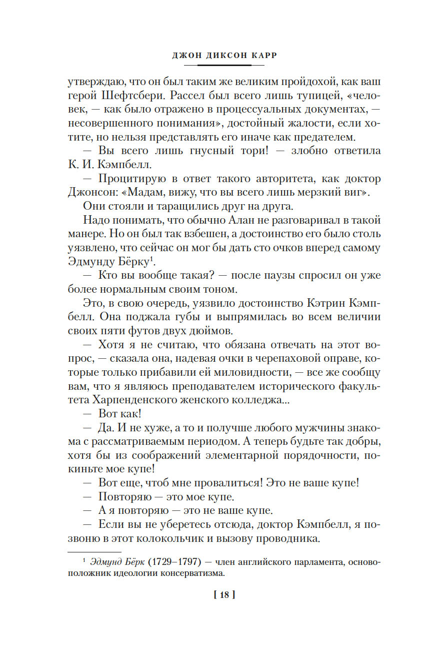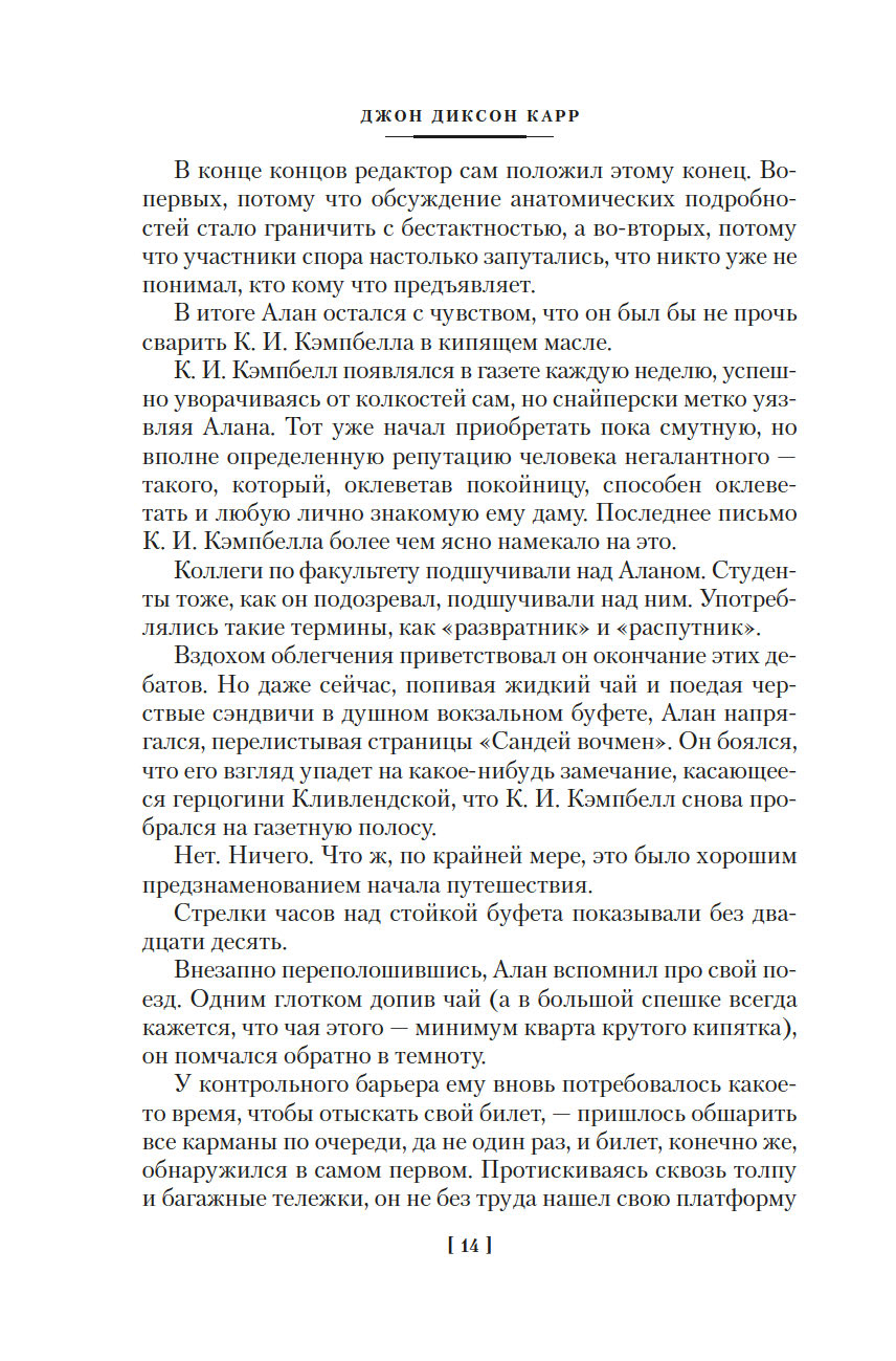 Золотой век детектива подарил нам множество звездных имен. Произведения таких писателей, как Агата Кристи, Гилберт Честертон, Эрл Стэнли Гарднер, Рекс Стаут, развивали и совершенствовали детективный жанр, их романы, безоговорочно признанные классикой, по сей день любимы читателями и являются эталоном качества для последующих поколений авторов детективных историй. Почетное место в этой плеяде по праву принадлежит Джону Диксону Карру (1906-1977) – виртуозному мастеру идеально построенных "невозможных преступлений в запертой комнате". В 1933 году Джон Диксон Карр впервые представил публике сыщика-любителя доктора Гидеона Фелла. Внешность героя, предположительно, была списана с другого корифея детективного жанра – Гилберта Честертона, а его заслуги в истории детективного жанра, по мнению большинства почитателей творчества Карра, поистине вызывают уважение. Так, писатель Кингсли Эмис в своем эссе "Мои любимые сыщики" назвал доктора Фелла "одним из трех великих преемников Шерлока Холмса".