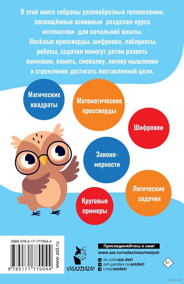 В этой книге представлены математические головоломки, специально разработанные для учеников начальной школы. Занимательные кроссворды, ребусы, шифровки, разнообразные игры с числами помогают школьникам не только развивать математические способности, но и вырабатывать важные для учёбы качества – внимание, усидчивость и стремление достигать поставленной цели.