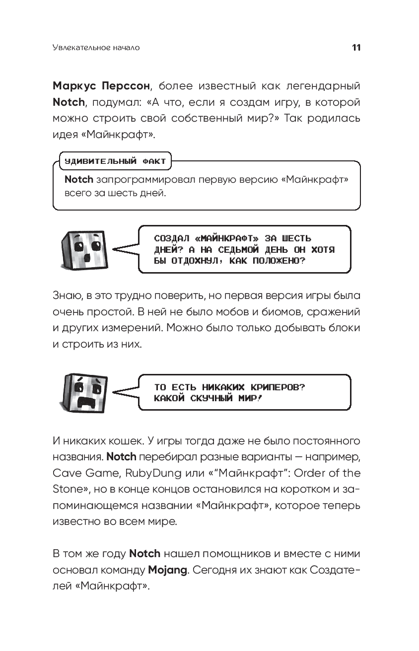 Майнкрафт – это мир, где возможно всё! В книге ты узнаешь новые факты, посмеёшься над забавными историями и найдёшь вдохновение для своих построек. Она станет твоим верным спутником в любимой игре!