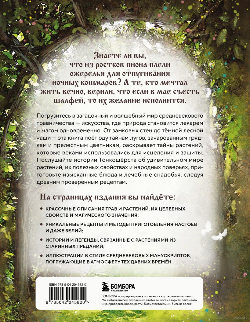 Эта волшебная книга посвящена растениям – нежным, скромным, целебным, тем, что питают, лечат, а порой и наводят ужас… Знали ли вы, что из ростков пиона плели ожерелья для отпугивания ночных кошмаров? А те, кто мечтал жить вечно, верили, что если в мае съесть шалфей, то их желание исполнится. Послушайте истории Тонкошерста об удивительном мире растений, о полезных свойствах трав и народных поверьях, приготовьте изысканные блюда и лечебные снадобья, следуя древним проверенным рецептам, применяющимся ещё во времена Средневековья: травяной эликсир для уменьшения болей в горле, средство против растяжений из лавровых листьев и даже любовное зелье!