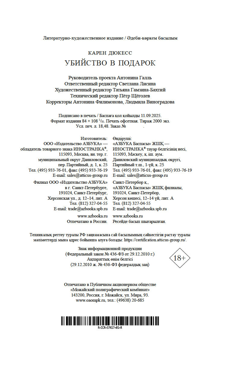 | Изготовитель | ООО "Издательство "Иностранка". 109017, РФ, г. Москва, ул. Пятницкая, 41 |