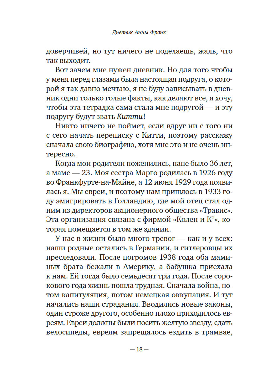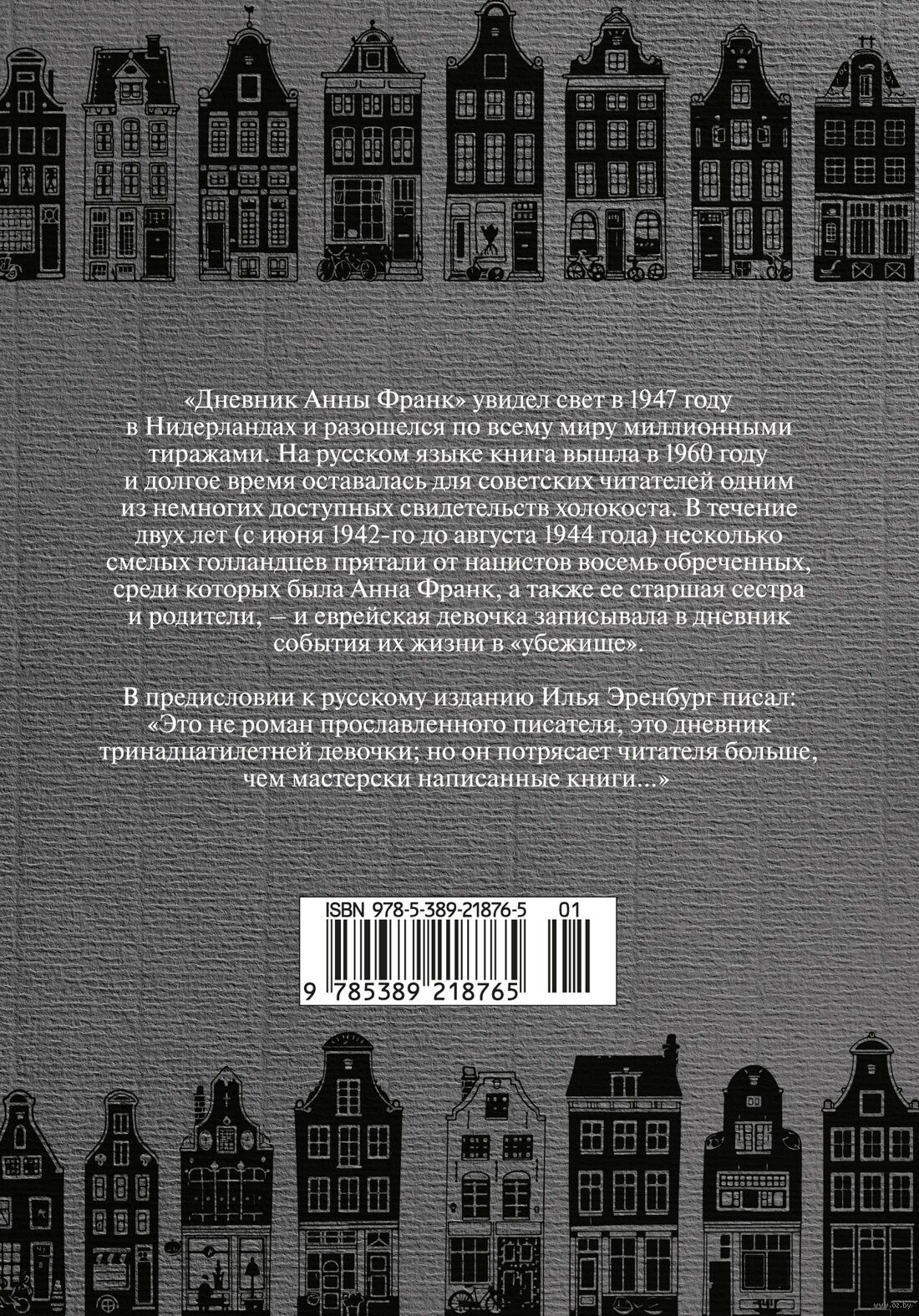 "Дневник Анны Франк" увидел свет в 1947 году в Нидерландах и разошелся по всему миру миллионными тиражами, книга была переведена на десятки языков. На русском языке "Дневник Анны Франк" впервые вышел в 1960 году, во времена "оттепели", и долгое время оставался для советских читателей одним из немногих доступных свидетельств холокоста. В течение двух лет (с июня 1942-го до августа 1944 года) несколько смелых голландцев прятали от нацистов восемь обреченных, среди которых была Анна Франк, а также ее старшая сестра и родители, – и еврейская девочка записывала в дневник события их жизни в "убежище". В предисловии к русскому изданию Илья Эренбург писал: "Это не роман прославленного писателя, это дневник тринадцатилетней девочки; но он потрясает читателя больше, чем мастерски написанные книги... Всем известно, что гитлеровцы убили шесть миллионов евреев, граждан двадцати государств, богатых и нищих, знаменитых и неизвестных… Они были отделены от мира стенами гетто, колючей проволокой концлагерей. Никто не знает, что они думали и чувствовали. За шесть миллионов говорит один голос – не мудреца, не поэта – обыкновенной девочки".