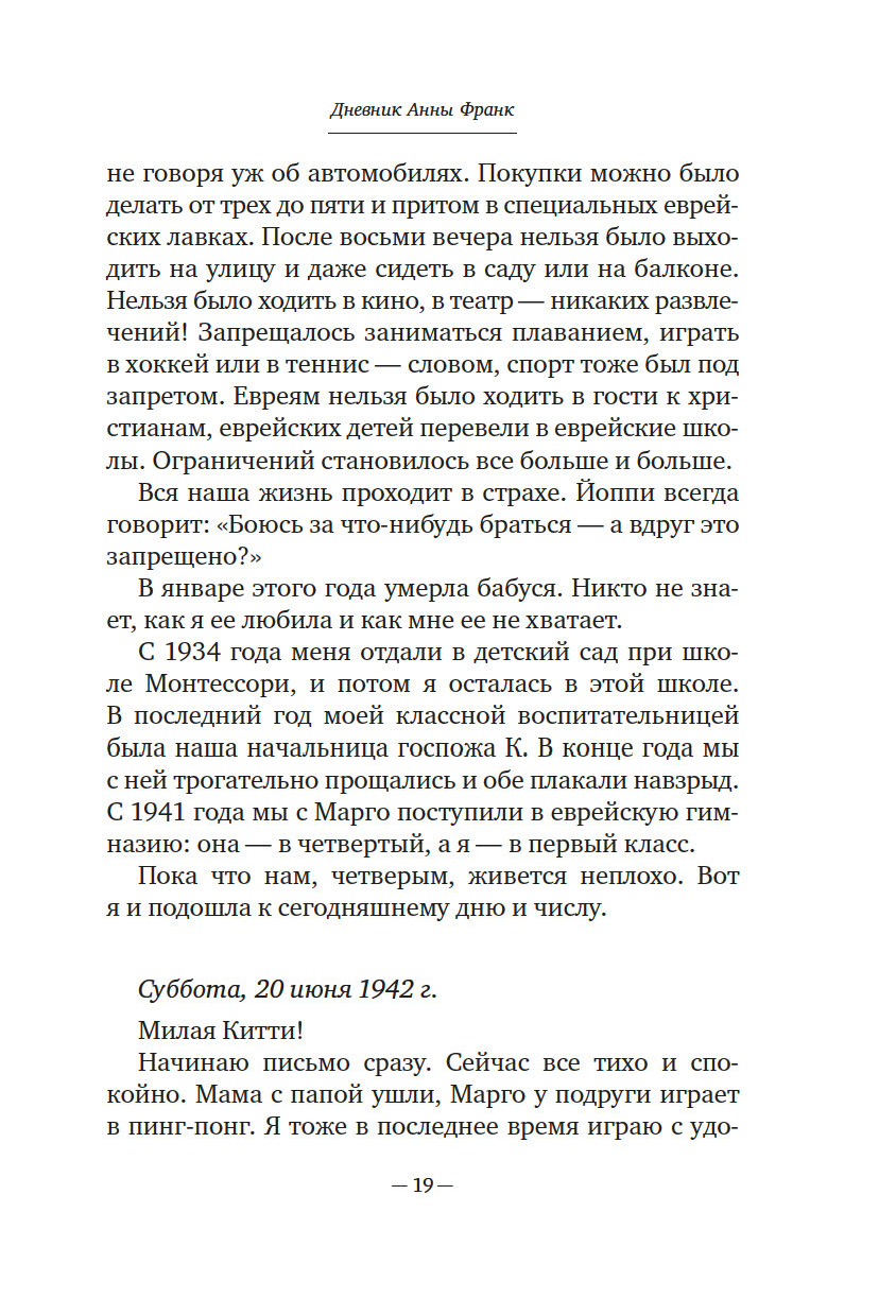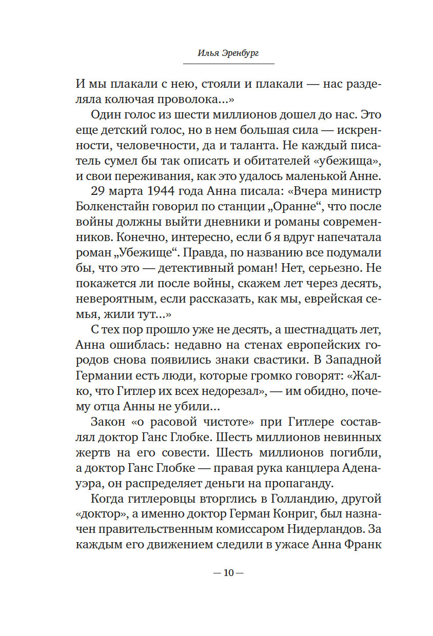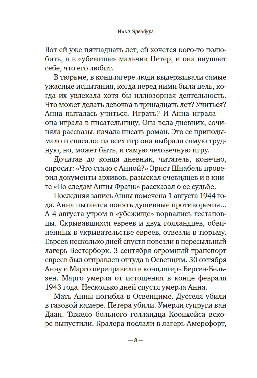 В книге представлен "Дневник Анны Франк" в переводе Риты Райт-Ковалевой с предисловием Ильи Эренбурга.