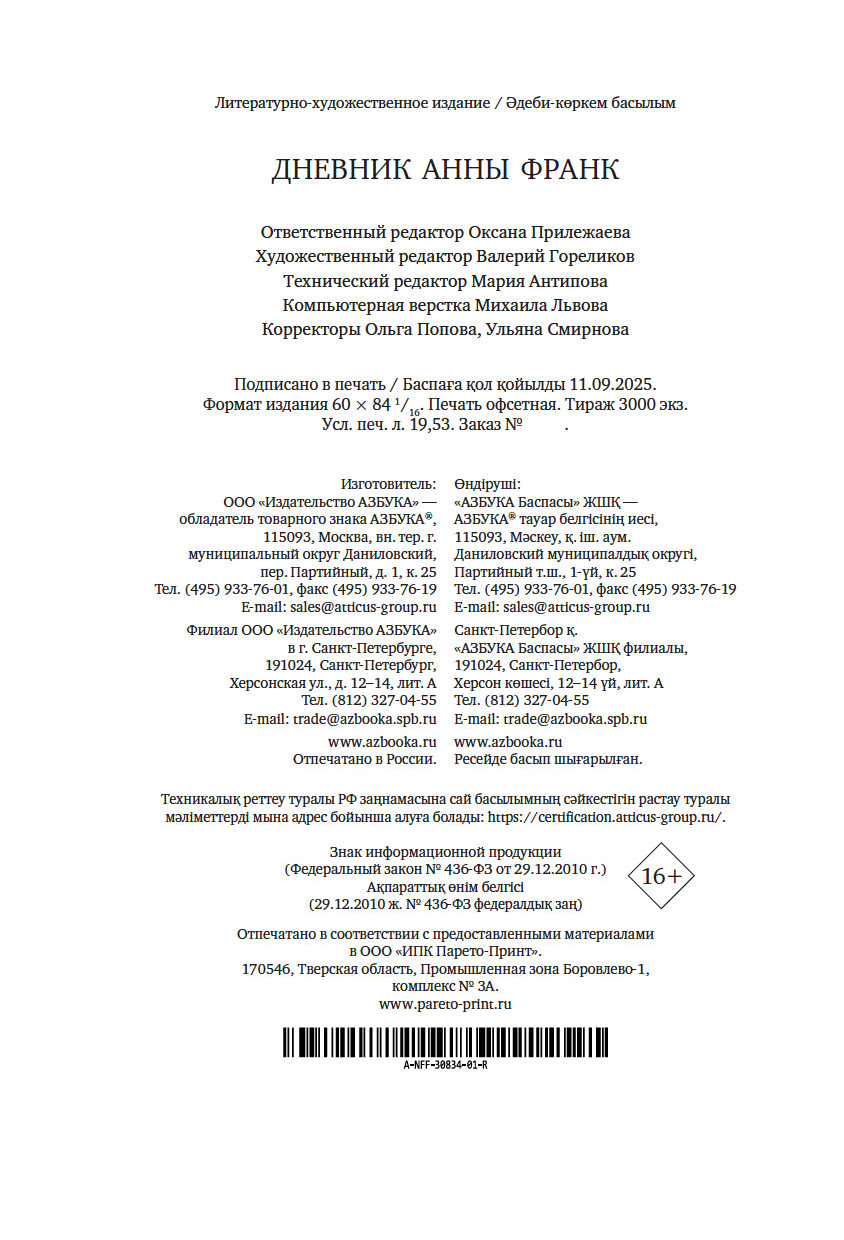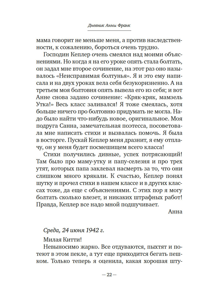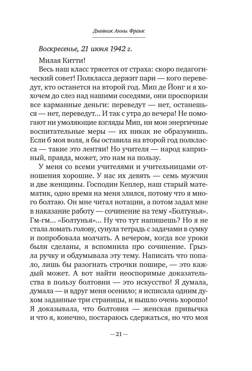 В книге представлен "Дневник Анны Франк" в переводе Риты Райт-Ковалевой с предисловием Ильи Эренбурга.