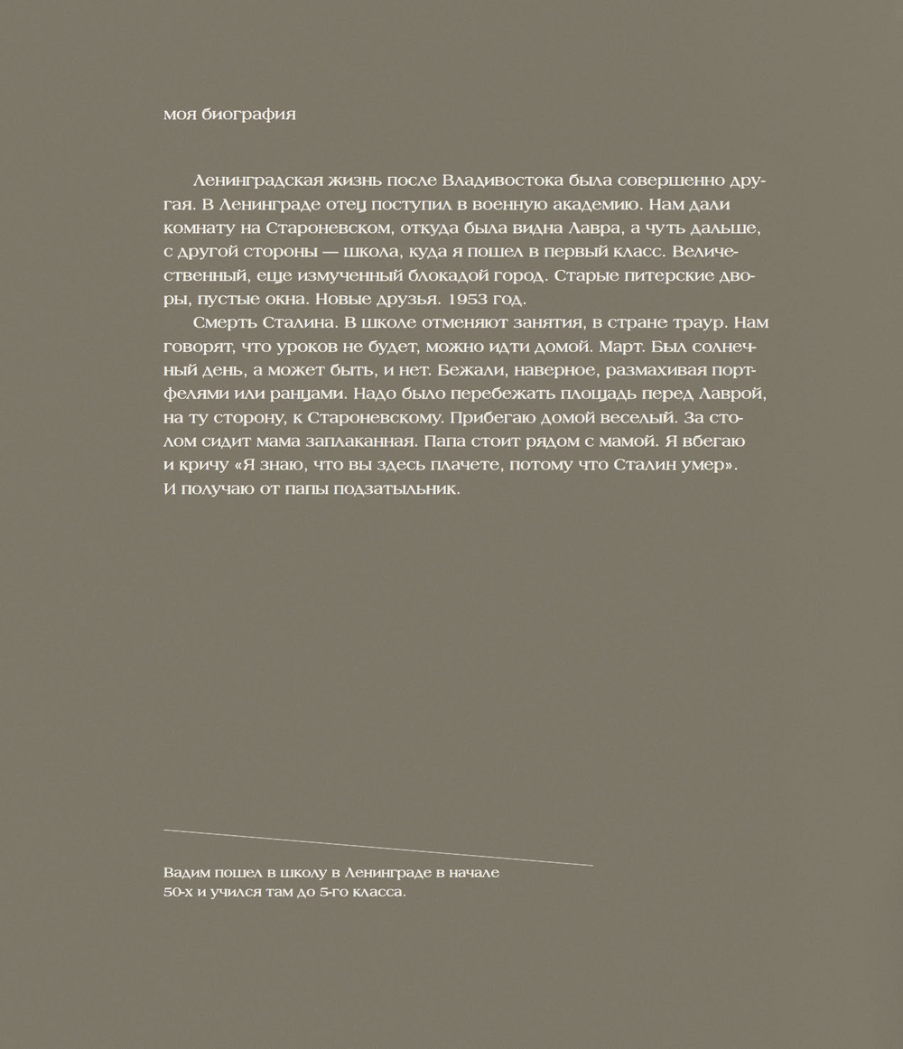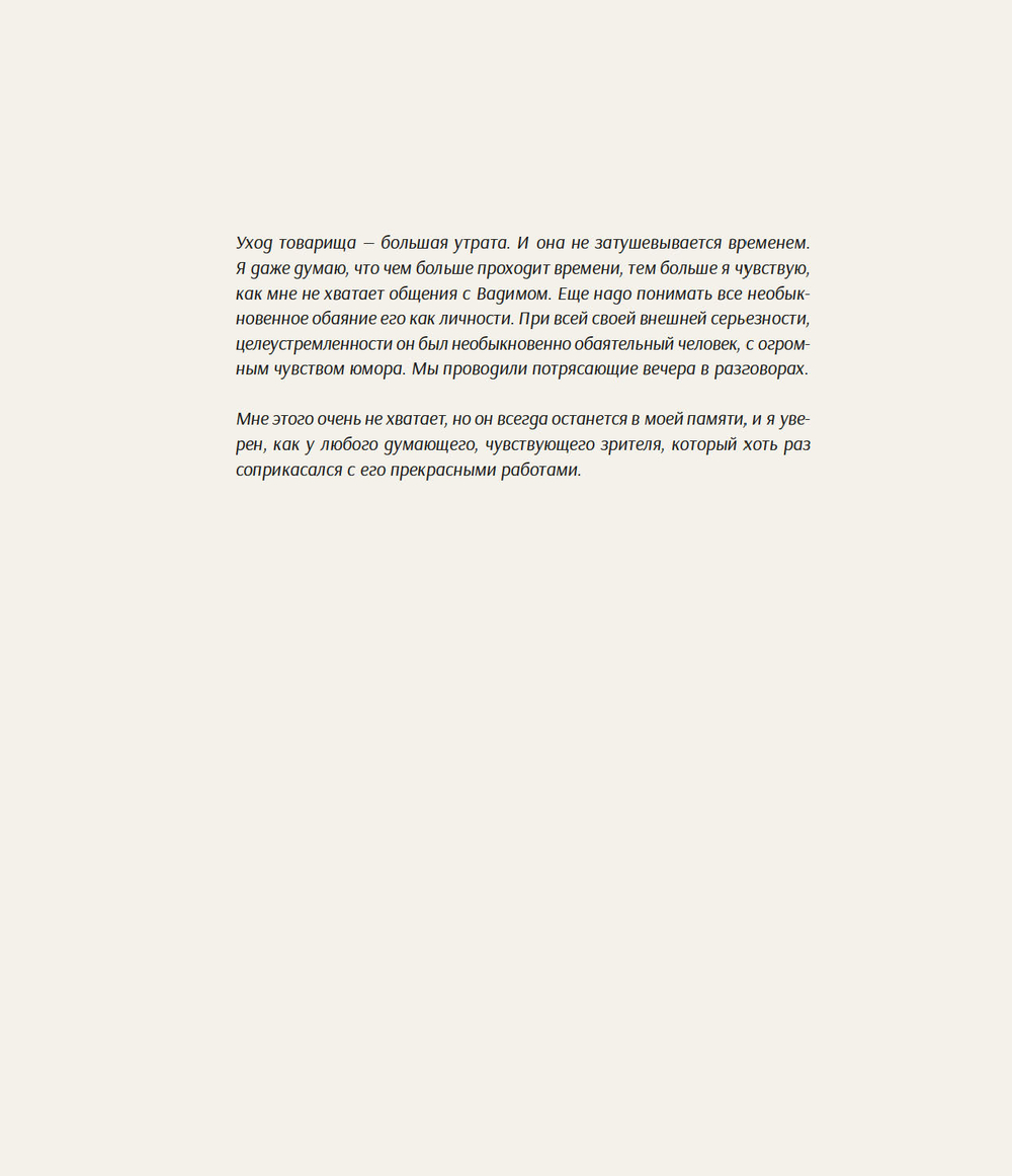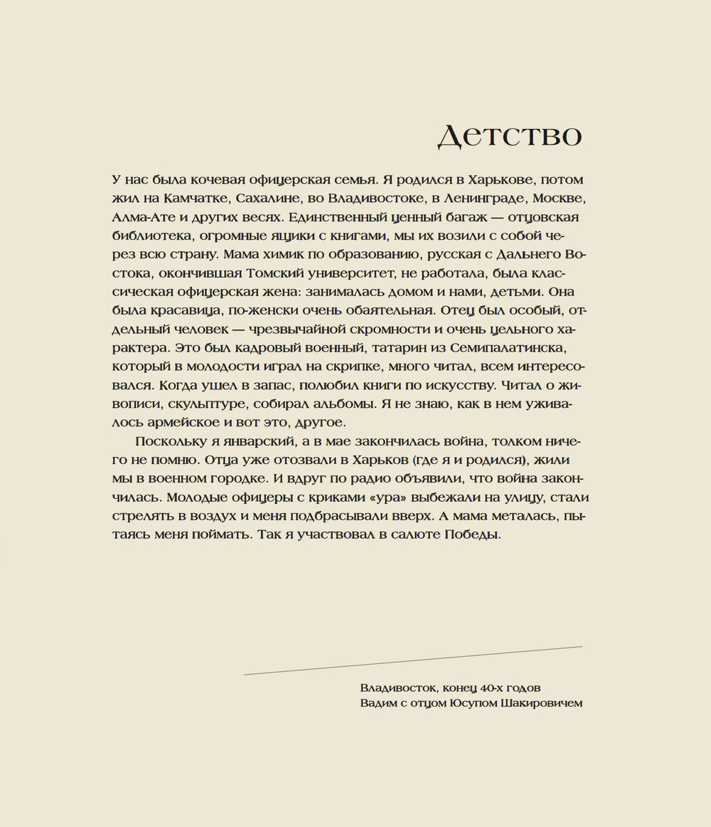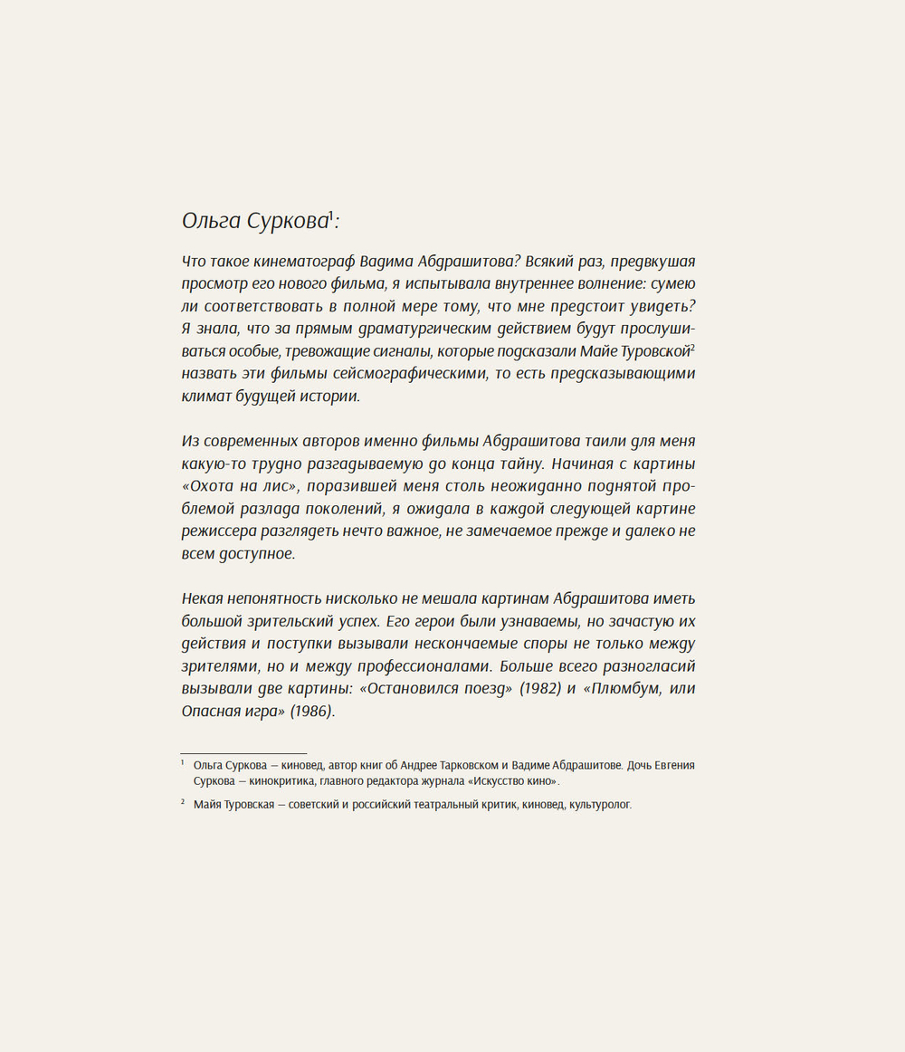 Вадим Абдрашитов родился ровно в год окончания Второй мировой войны. Снимая с 70-х годов фильмы, он очень правдиво рассказал о жизни нашей страны во второй половине ХХ века и о самых важных проблемах, с которыми мы сталкивались. Время ученичества и выбора профессии, встречи с замечательными людьми, его размышления о жизни, рассказы о нем других людей – это книга не только об Абдрашитове, но о том, как мы прожили вторую половину ХХ-го века и что мы перенесли из него в век XXI-й.