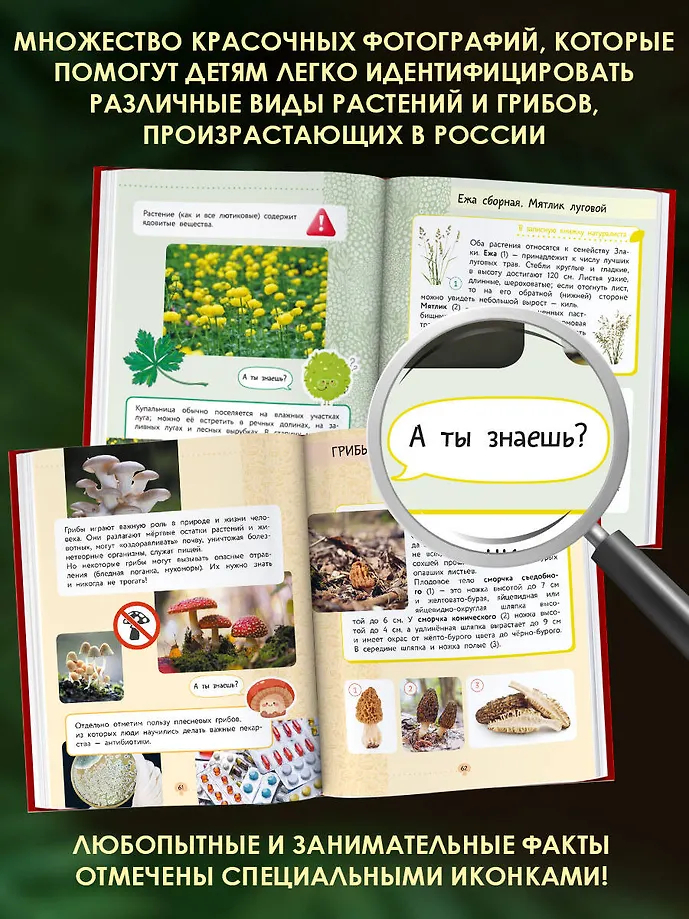 Школьная энциклопедия "Растения и грибы" содержит множество красочных фотографий, которые помогут детям легко идентифицировать различные виды растений и грибов, произрастающих в России. Наша книга – не просто справочник, а увлекательное путешествие в мир природы, которое поможет детям лучше понять окружающий нас мир и с уважением к нему относиться!