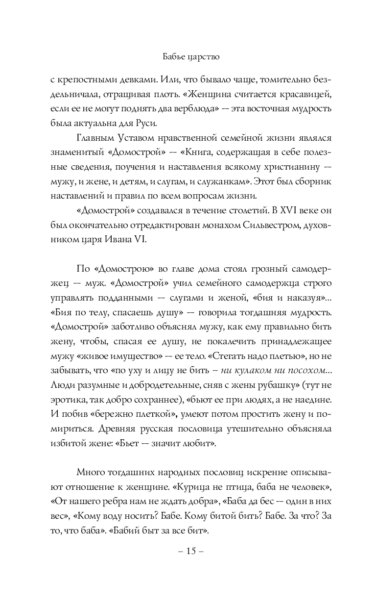Это был воистину русский парадокс. В стране "Домостроя", где многочисленные народные пословицы довольно искренне описывали положение женщины: "Курица не птица, баба не человек", "Кому воду носить? Бабе! Кому битой бить? Бабе! За что? За то, что баба", – весь XVIII век русским государством самодержавно правили пять женщин-императриц и одна Правительница. Все наши коронованные дамы были необычайно воинственны и сумели оставить в наследство XIX веку и мужчинам-императорам – необъятную страну с необъятными проблемами, которые в конце концов привели страну к катастрофе…